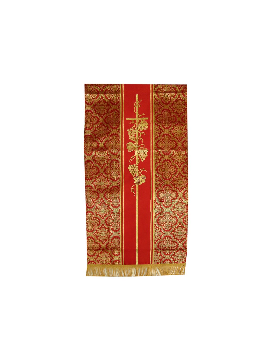 Cubre Ambon Estampado Cruz Largo Con Uvas Y Hojas De Parra Rojo