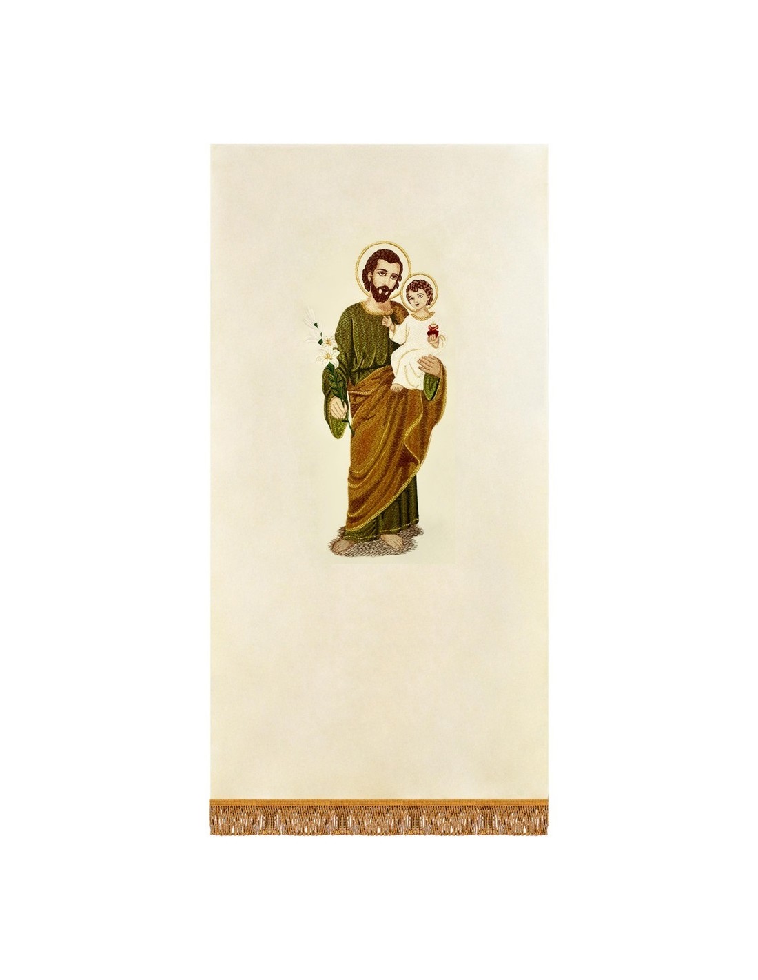 Cubre Ambon Bordado Con Flecos San Jose Con Niño En Brazos
