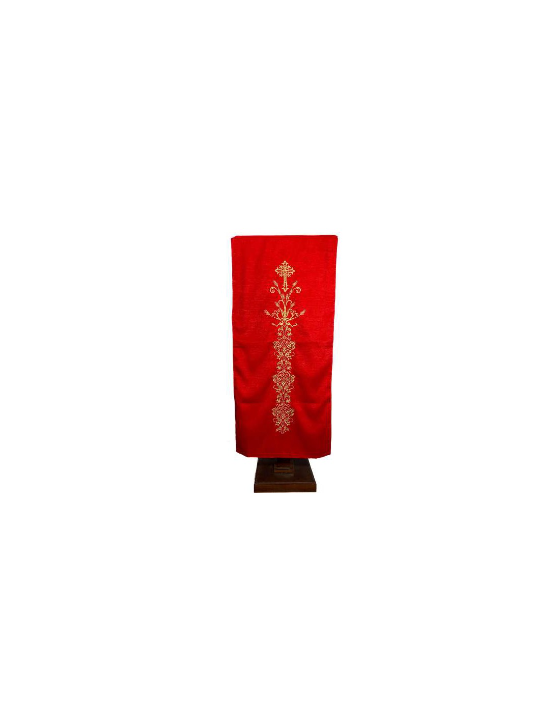 Cubre Ambon Bordado Cruz Con 2 Espigas Debajo Y Cenefa Floral Rojo