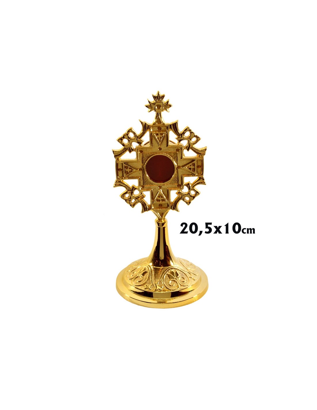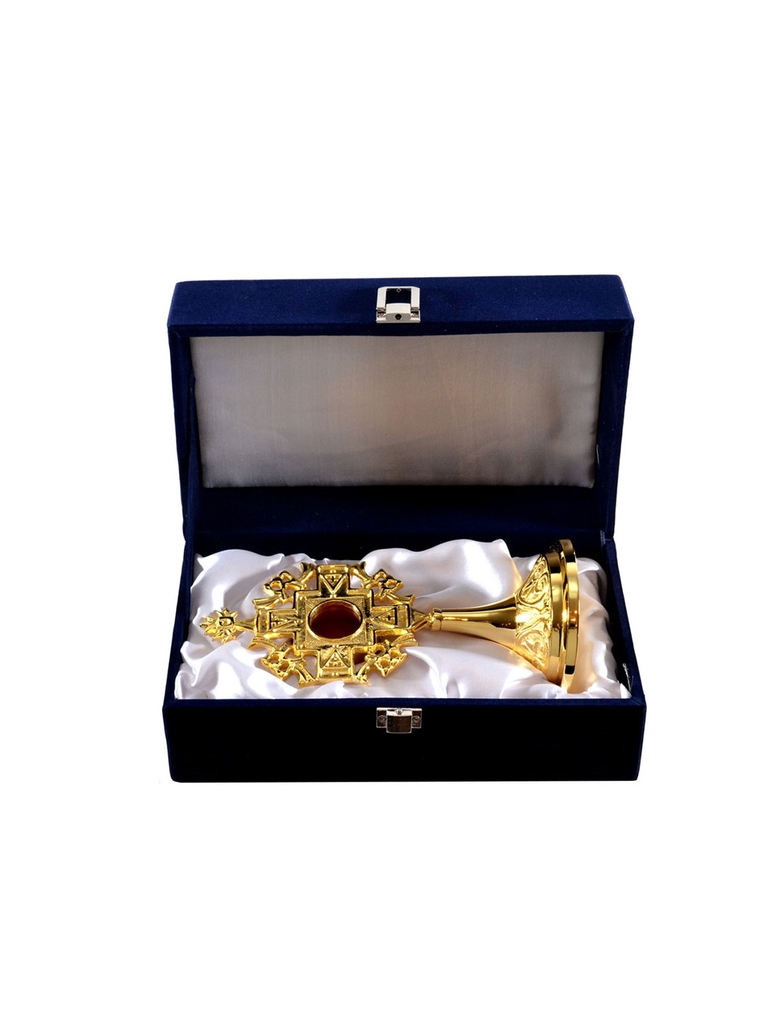 Relicario Dorado Octogonal Y Base Labrada Con Caja Baño Oro 24K 20. 5 X 10Cm