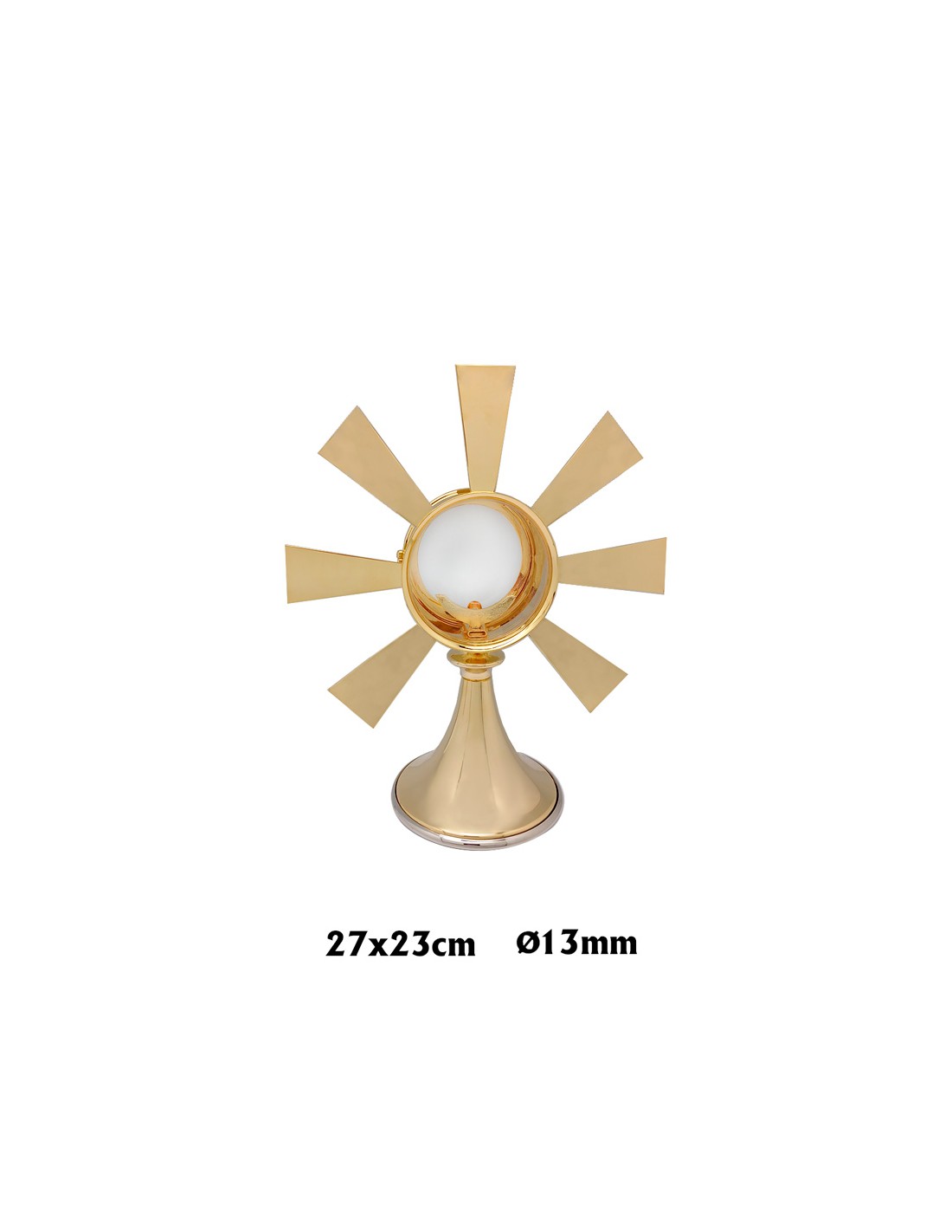Custodia Metal Dorada Tipo Rayos Anchos 27X23cm Y Base De 13Cm Diametro