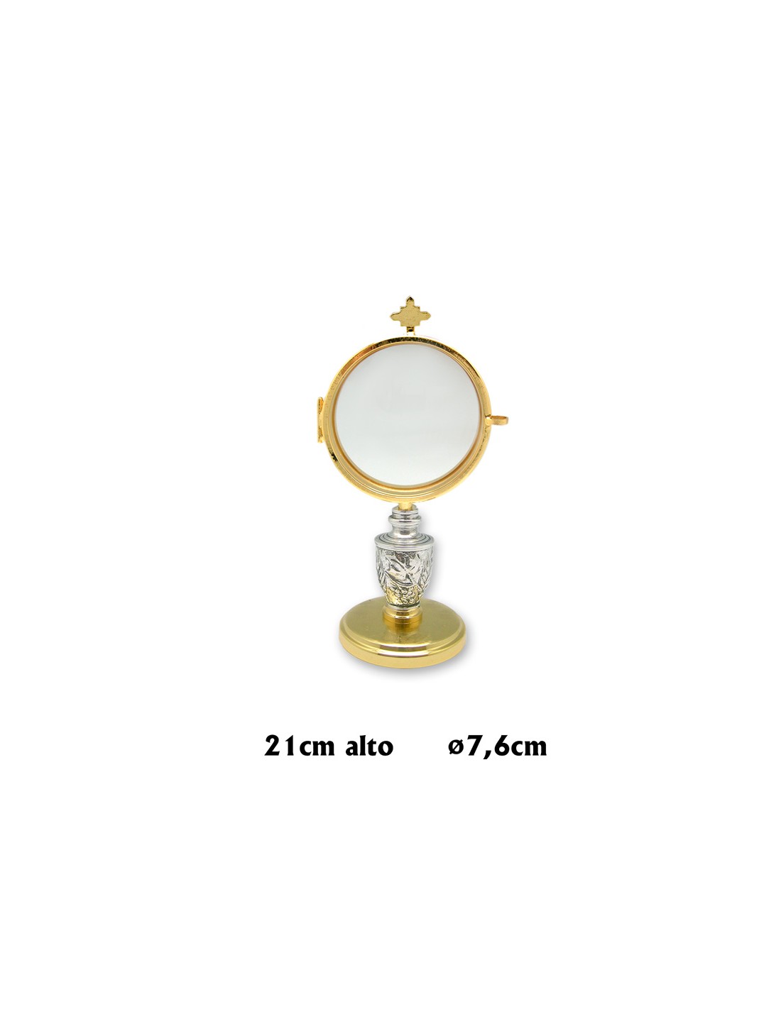 Custodia Dorada 20Cm Sencilla Pie Plateado Grabado Espigas Y Hoja Parra