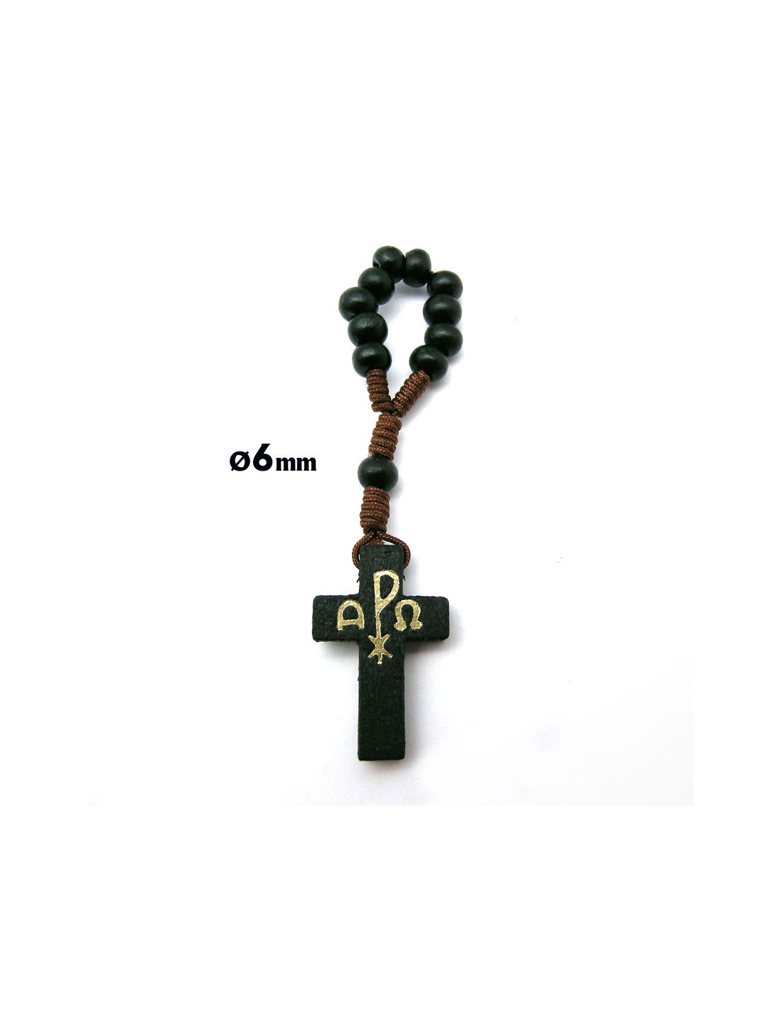 Rosario Decena Madera Y Cuerda Negro Cruz Con Pax