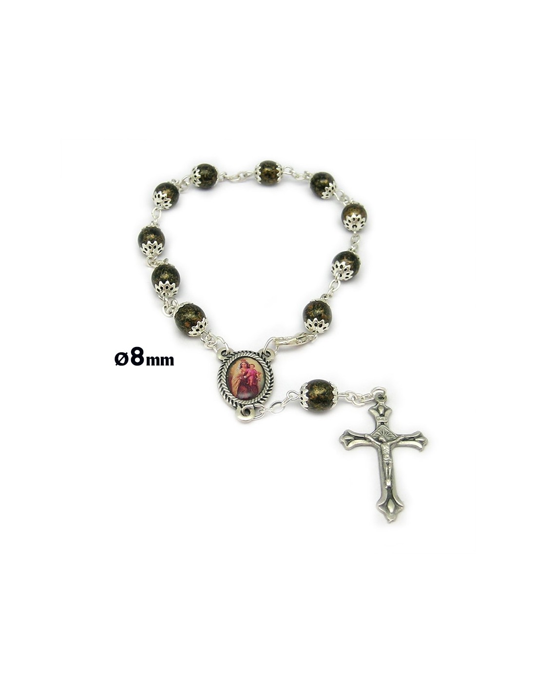 Rosario Decena Cristal 8Mm Copeta Dorado Con Hilos Negros