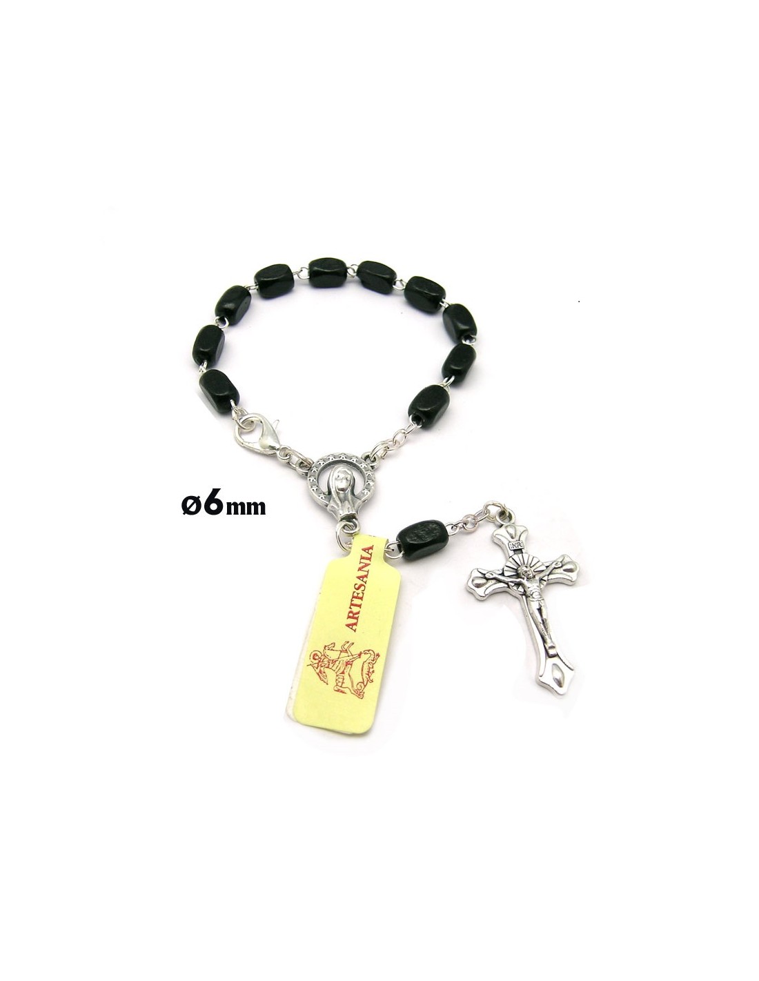 Decena Madera Rectangular Negro 6Mm Con Mosqueton
