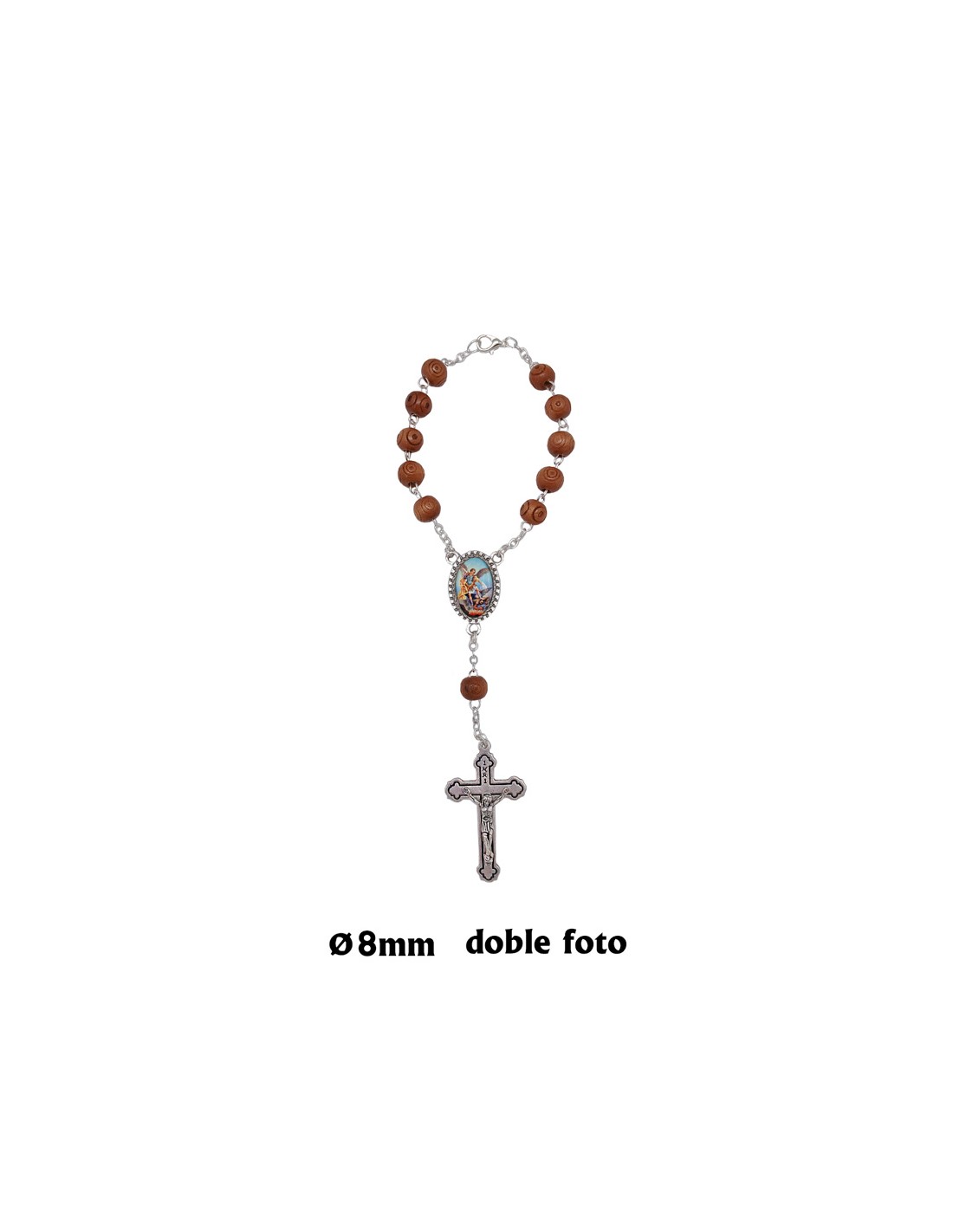 Decena Madera Redonda Trabajada 8Mm Marron Con Mosqueton