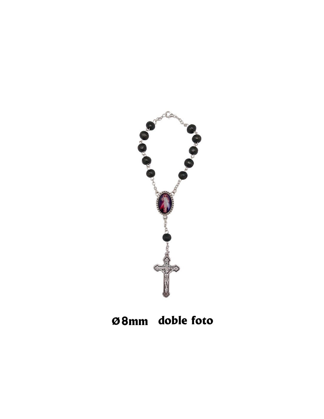 Decena Madera Redonda Trabajada 8Mm Negro Con Mosqueton