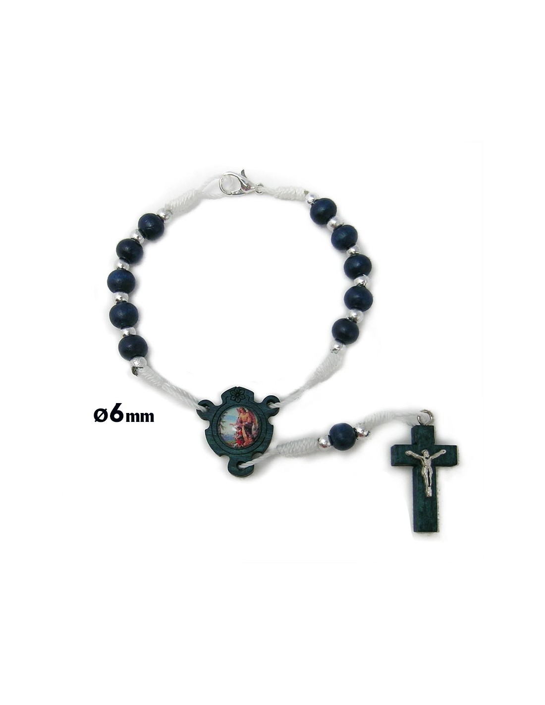 Decena Madera Azul 8X6mm Cuerda Bolitas Metal Cruz Cristo Mosqueton