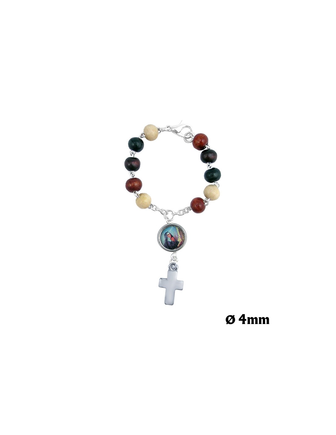 Decena Madera Redonda 6Mm Multicolor Con Cruz Metal Para Personalizar