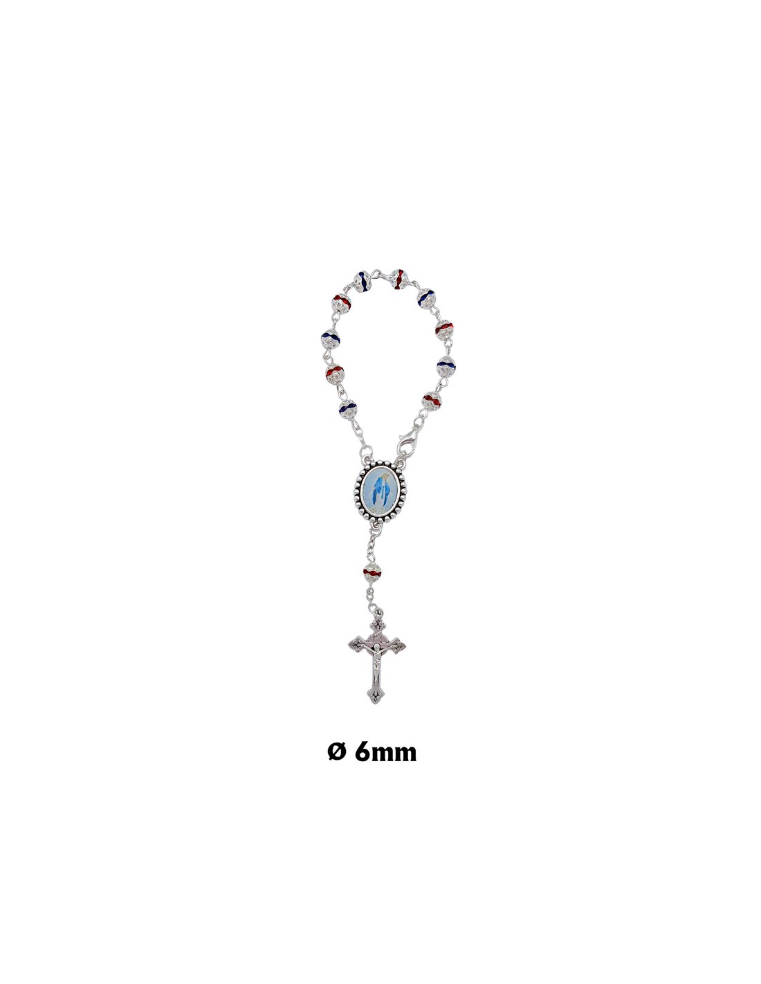 Decena Cristal Rojo Y Azul 6Mm Con Copetas