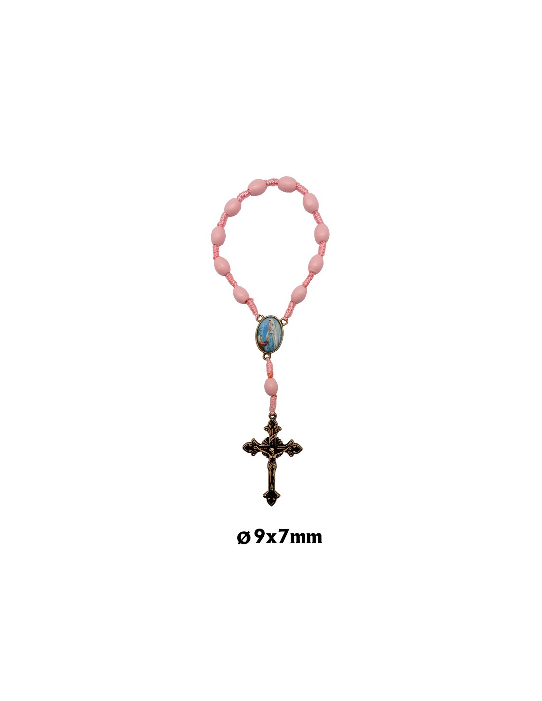 Decena Madera Y Cuerda Rosa 10X8mm Cruz Y Maria Color Bronce