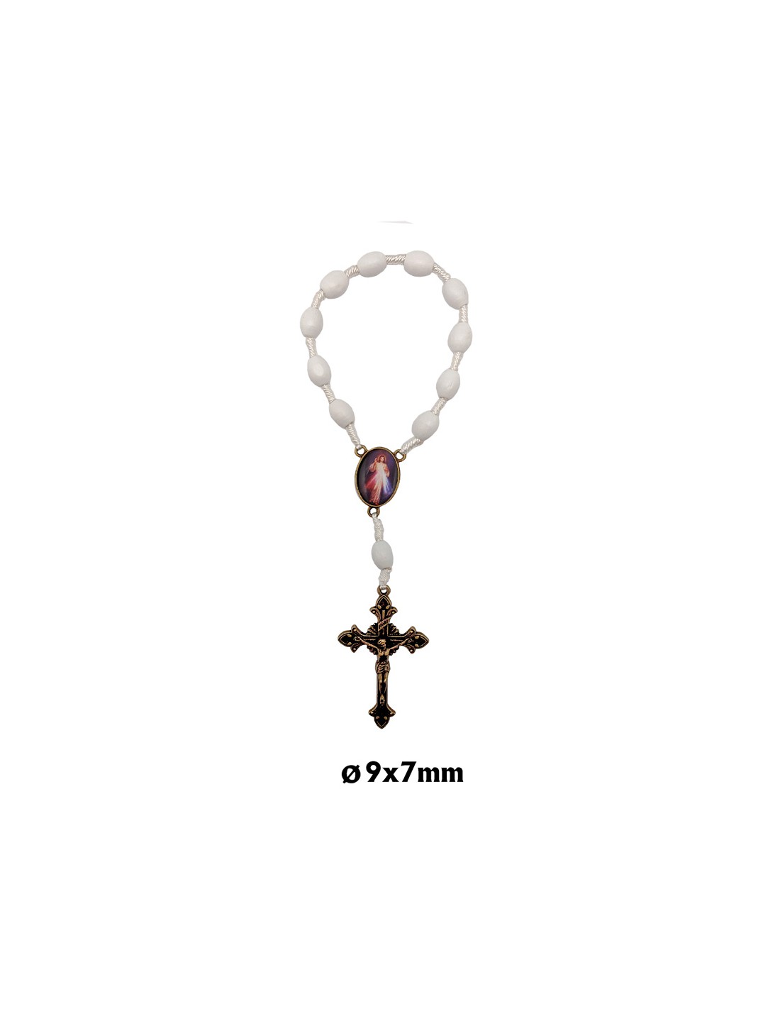 Decena Madera Y Cuerda Blanca 10X8mm Cruz Y Maria Color Bronce
