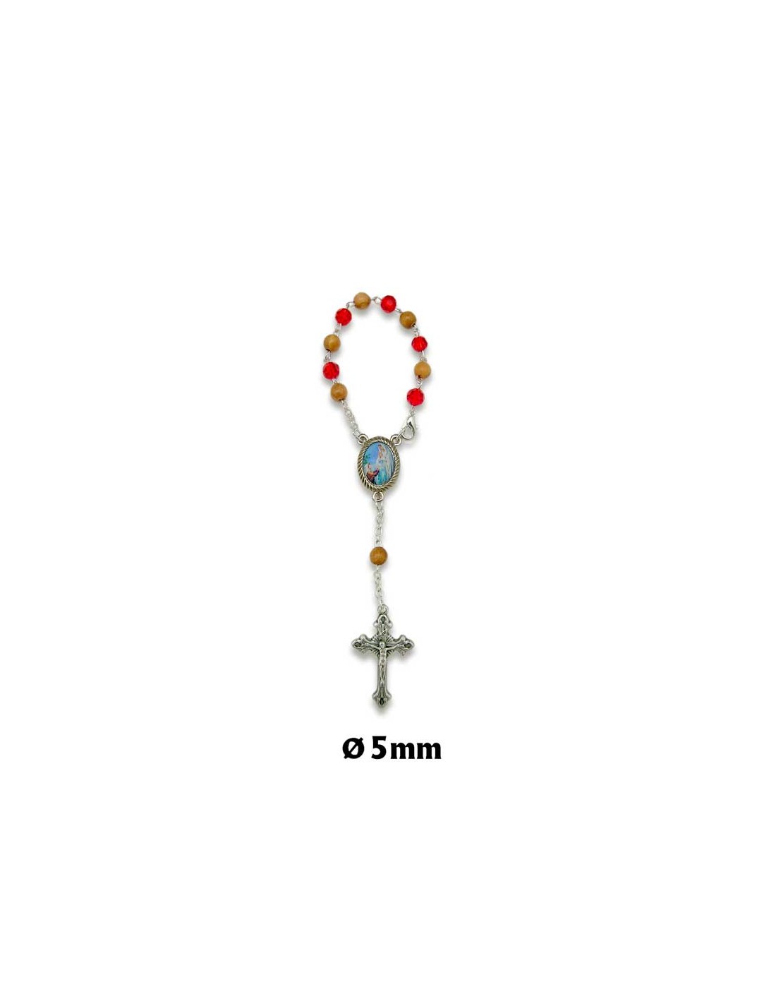 Rosario Decena Madera Y Cristal Rojo Bola 5Mm Con Mosqueton