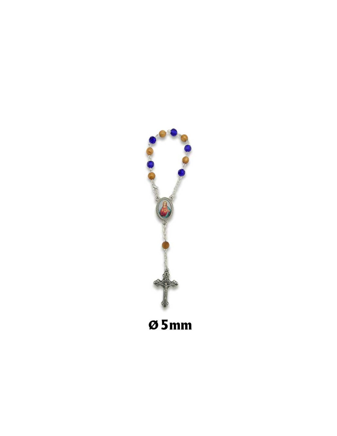 Rosario Decena Madera Y Cristal Azul Bola 5Mm Con Mosqueton