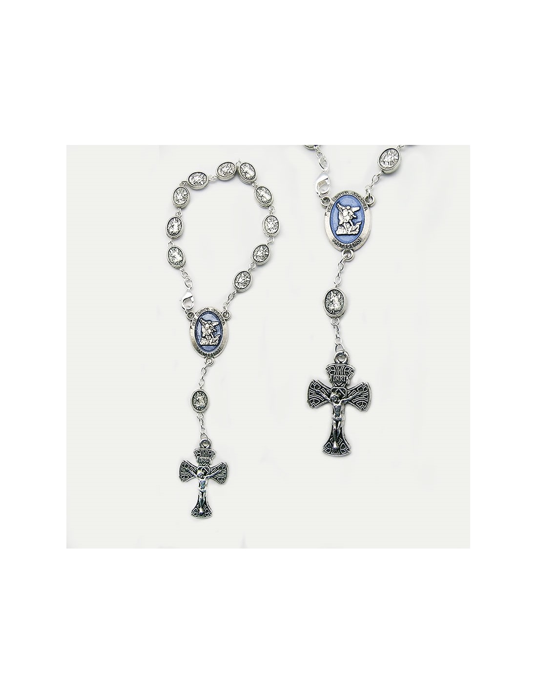 Decena Metal San Miguel Oval Con Maria Esmalte En Azul