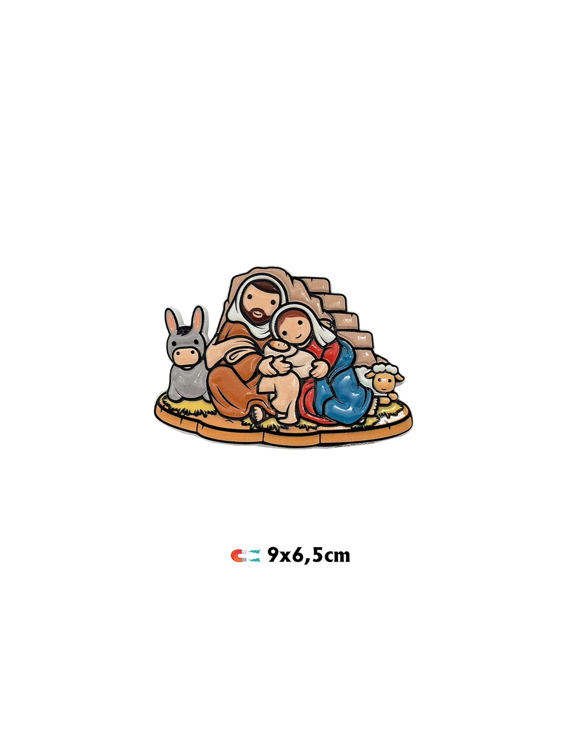 Iman nacimiento Sagrada Familia sentada burro y oveja 6.5x9cm resina