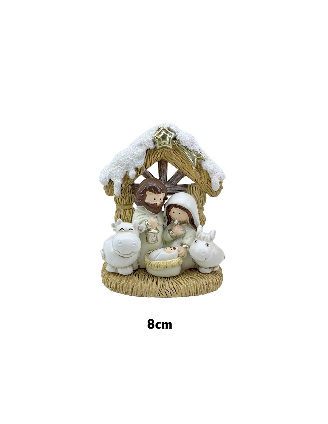 Nacimiento Res 8.5X7cm Pca 4 Sagrada Familia Pesebre Nevado Con Estrella Tonos Blancos