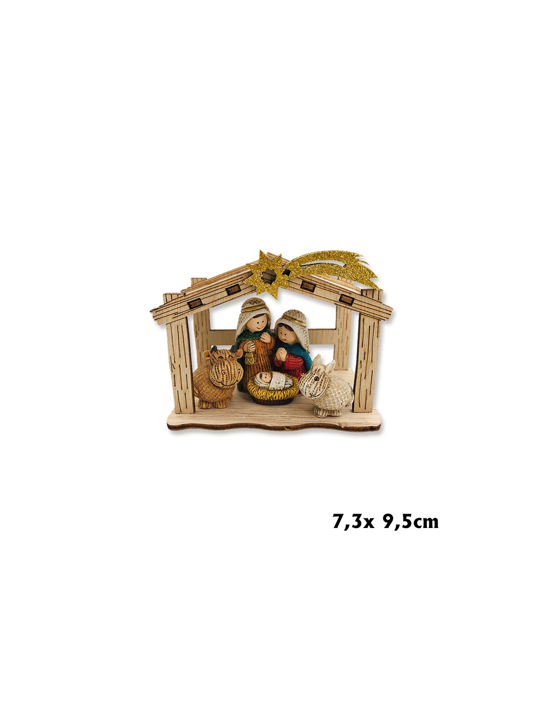 Nacimiento Res Sagrada Familia 5 Piezas Pe En Pesebre Madera 7. 5X9. 5Cm San Jose Joven