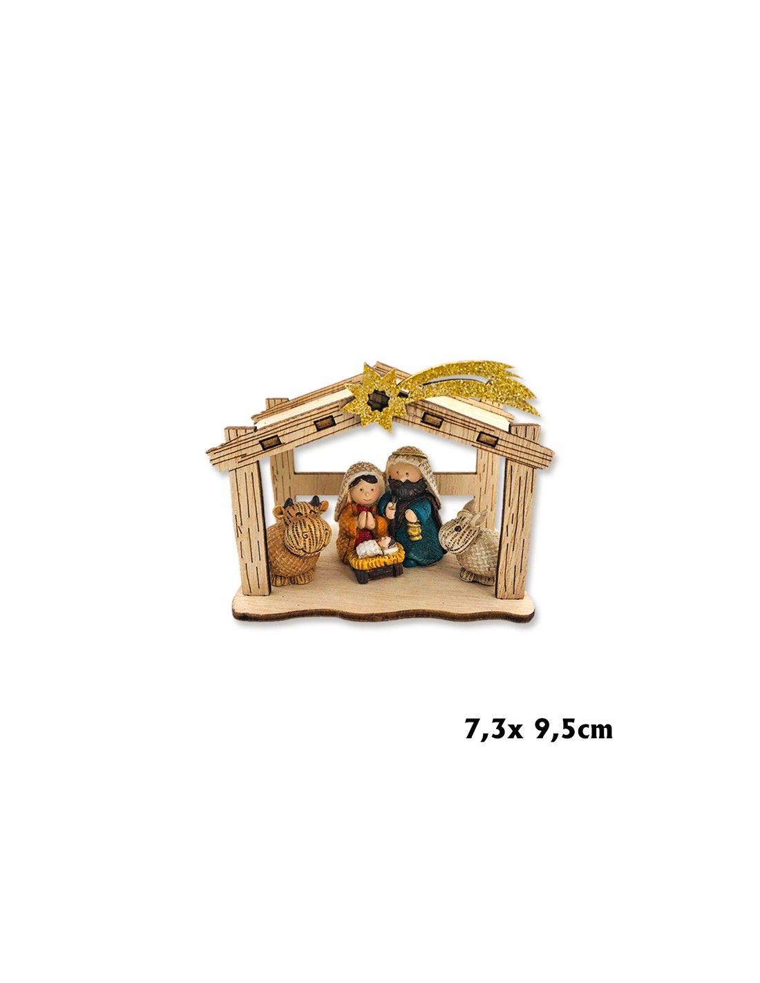Nacimiento Res Sagrada Familia 5 Piezas Pe En Pesebre Madera 7. 5X9. 5Cm San Jose Con Barba