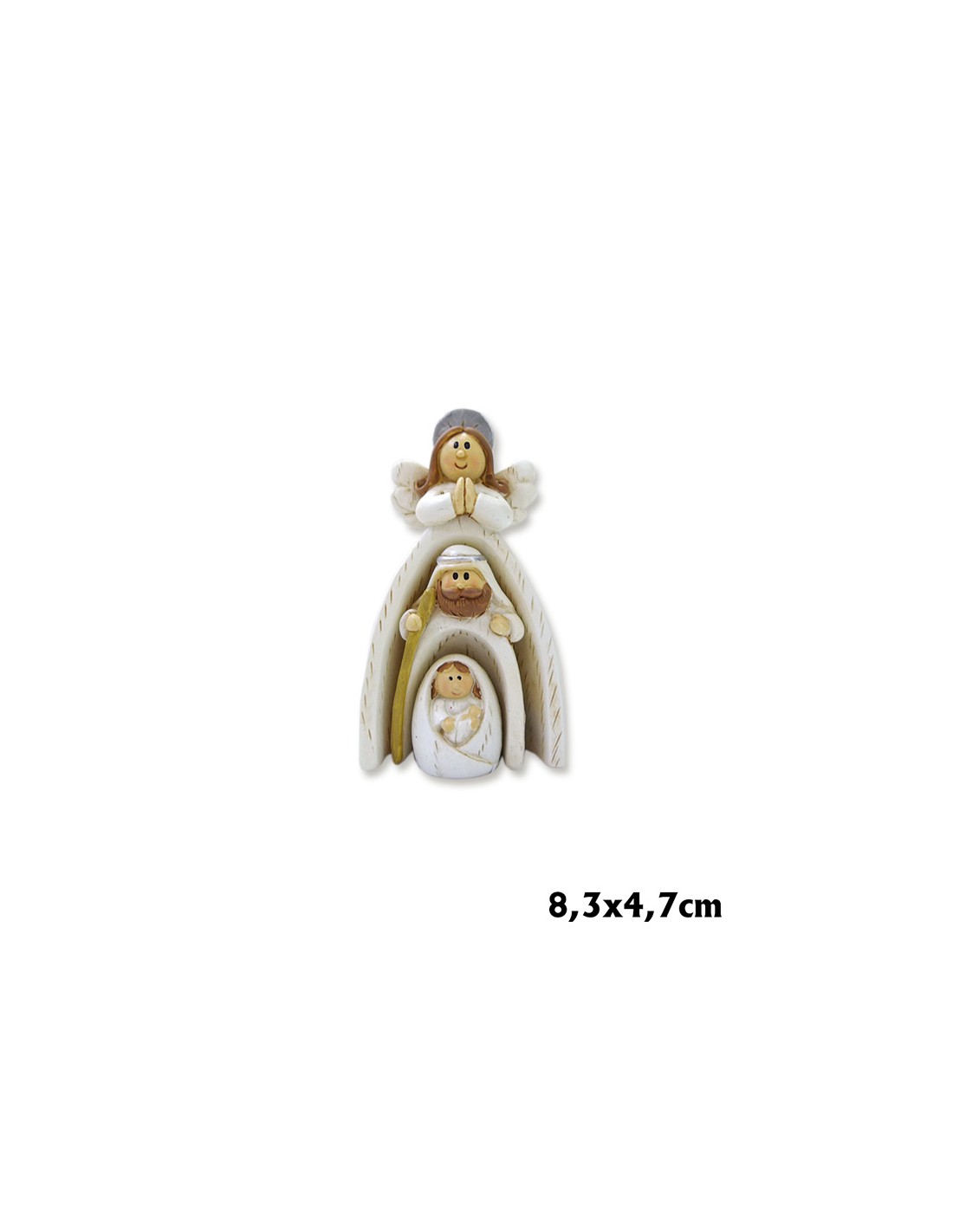 Nacimiento Res 8. 5X5cm Angel Con Sagrada Familia Pt Debajo 3 Figuras Serie Blanca