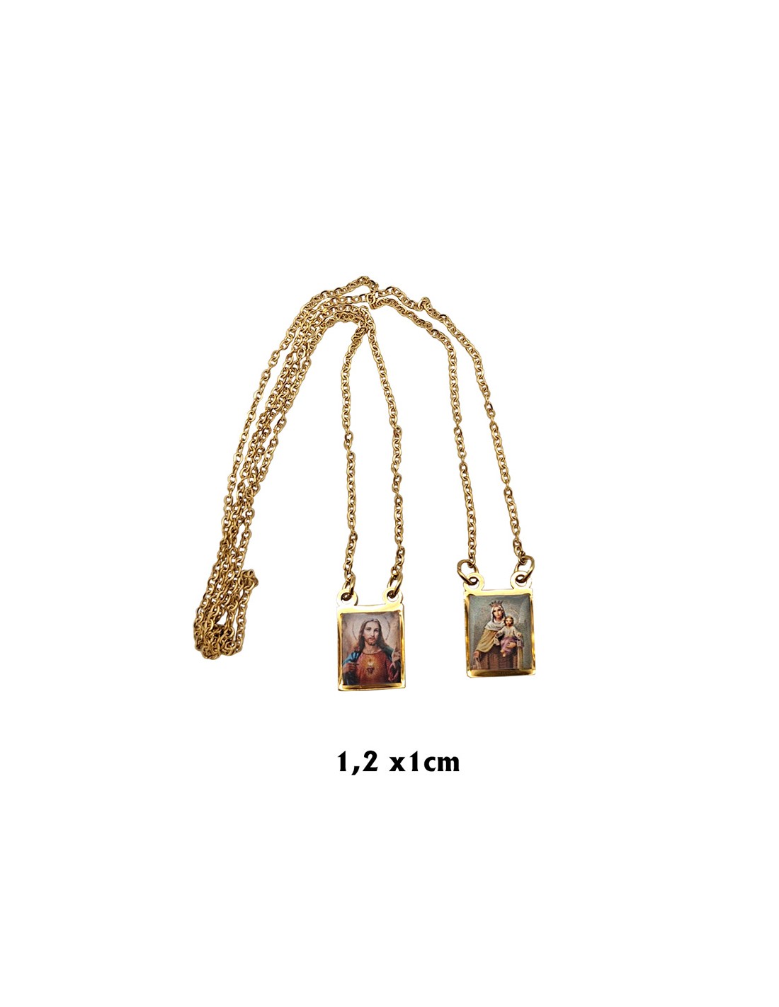 Escapulario Acero dorado Rectangular 1.2x1cm foto esmalte duro con cadena de acero