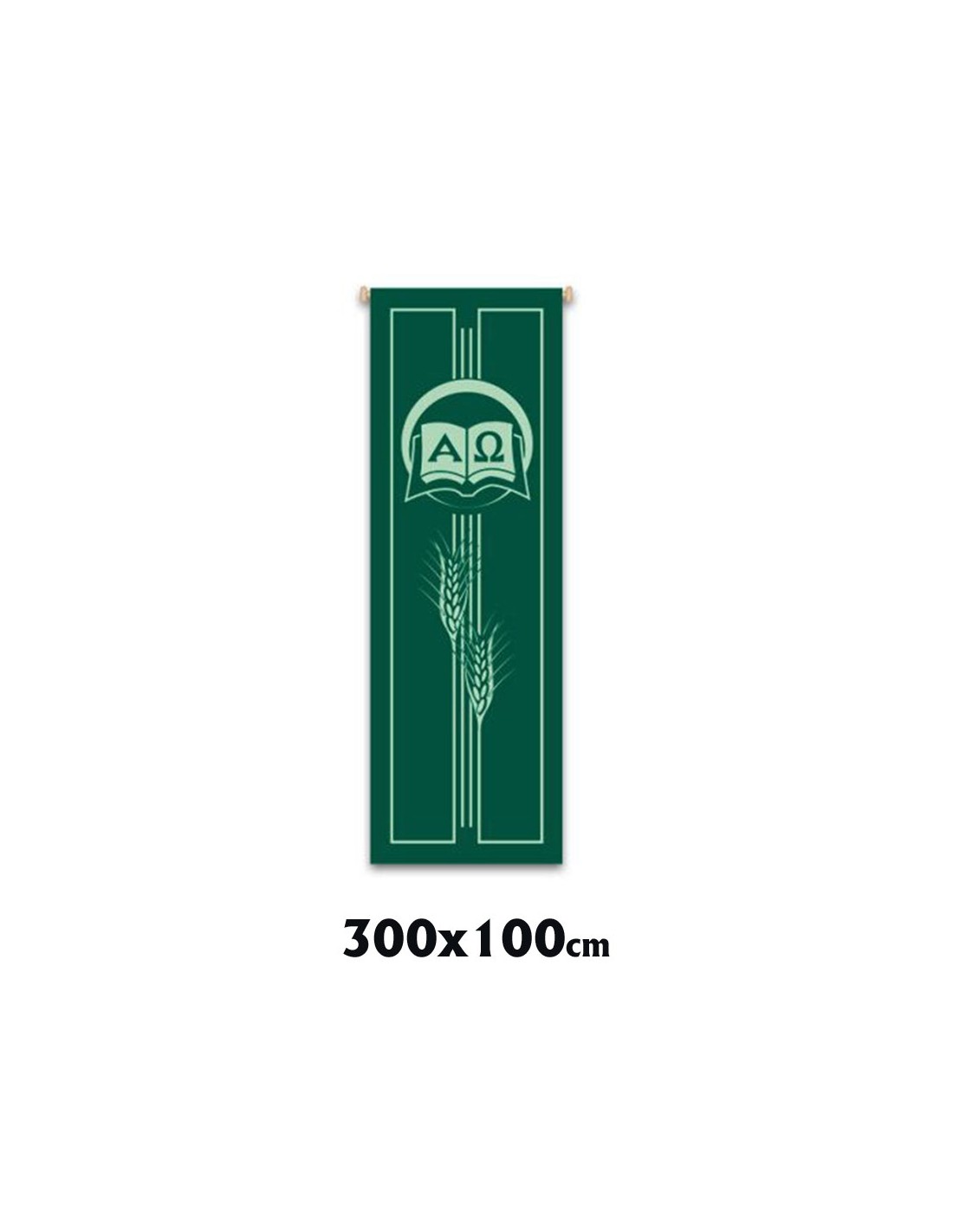 Estandarte Liturgico Verde Libro Alfa Y Omega Y Espigas 300X100cm