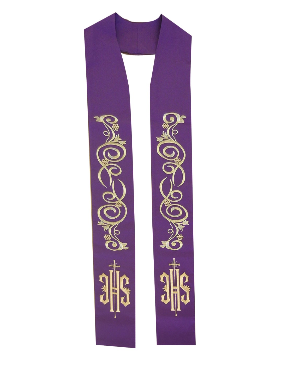 Estola Bordada Jhs Con Hilos Dorados Morada Kst 031 Hasta Parte Superior Morada