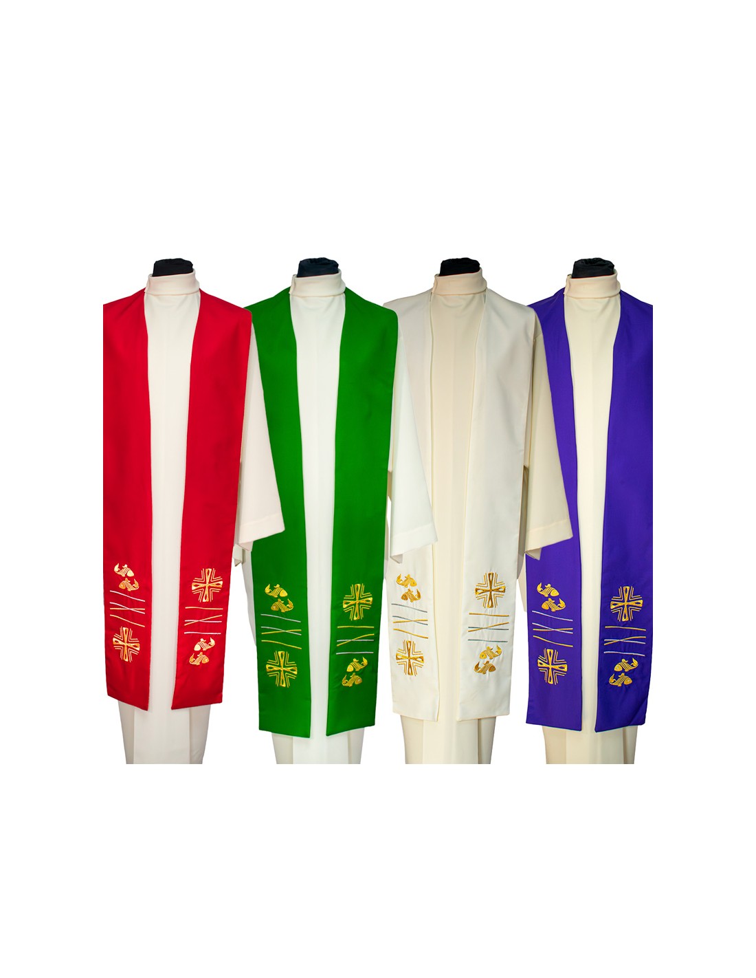 Conjunto 4 Estolas Con Cruz Cuadrada Y 2 Peces Rayados