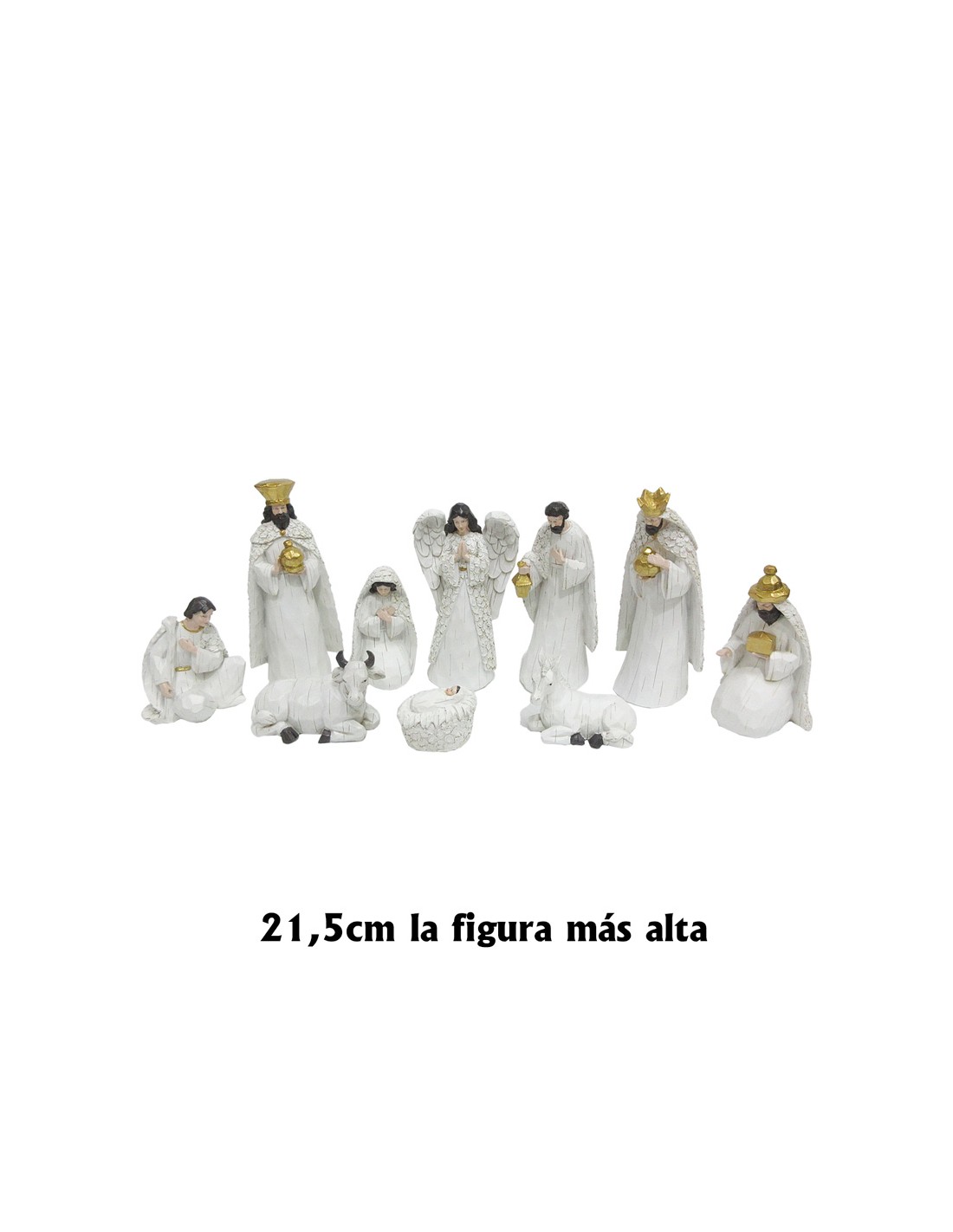 Nacimiento Res 21.5Cm 10 Figuras Color Blanco Con Adornos Dorados