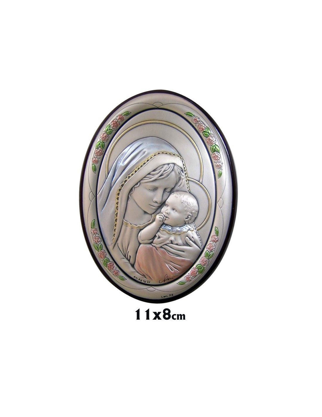 Icono Plata Oval 11X8cm Virgen Y Niño...