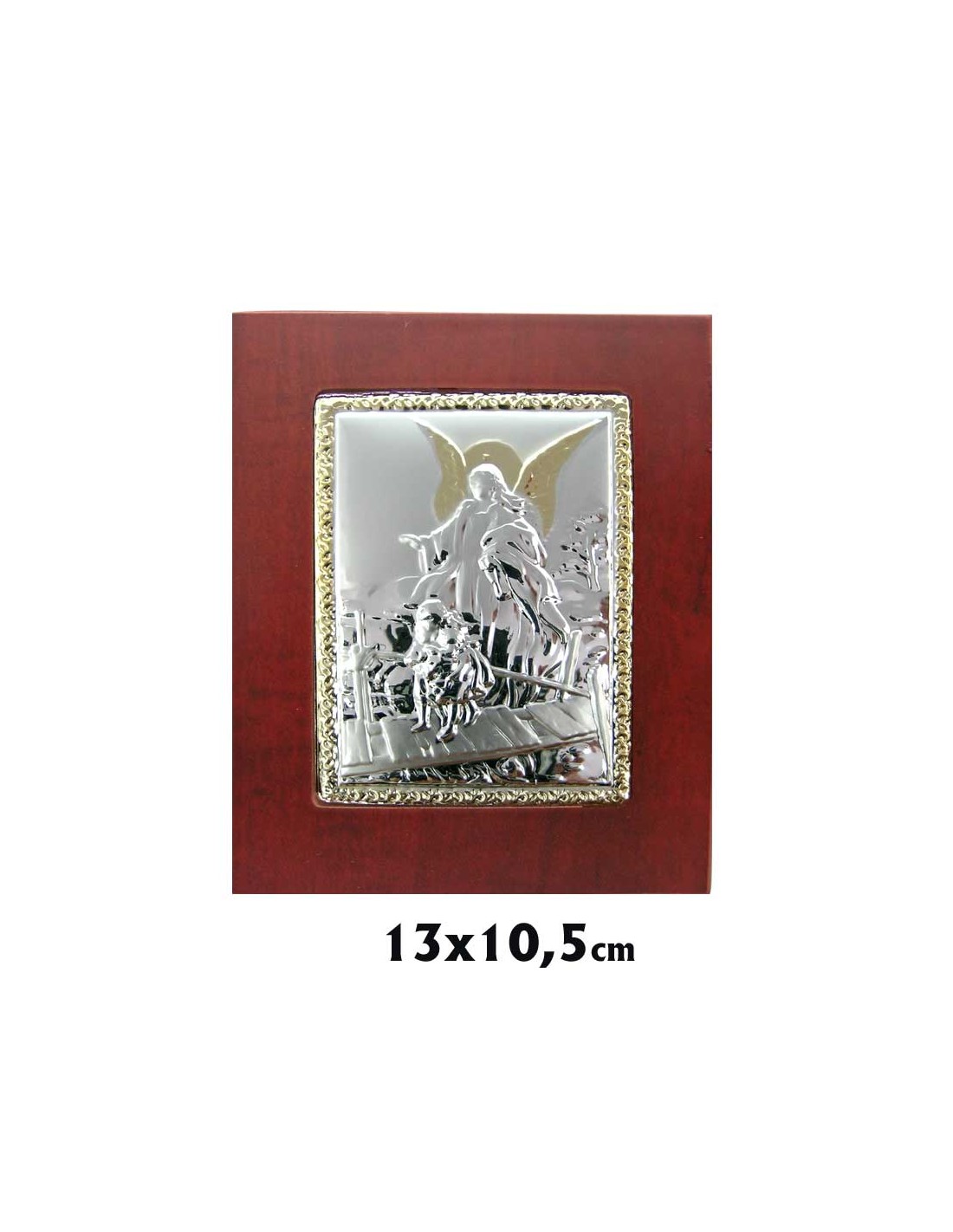 Icono Plata Rectangular Bilaminada Angel Guarda 13X10. 5Cm Bicolor Marco Madera