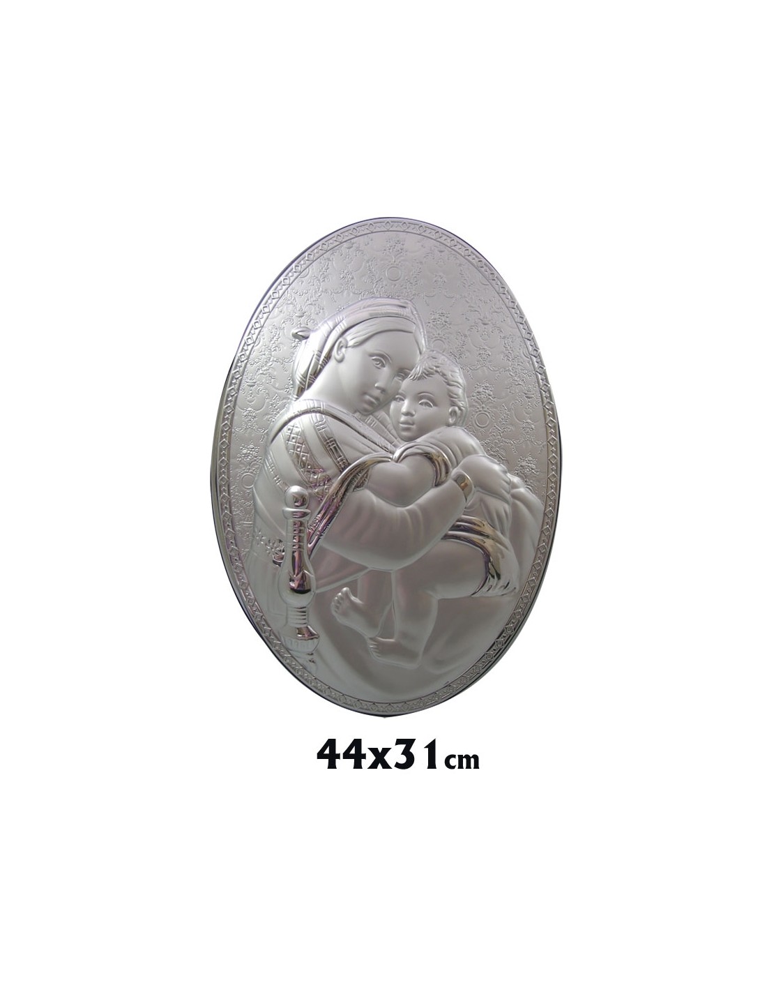 Icono Plata Oval 44X31cm Virgen Con Turbante Parte Trasera Madera
