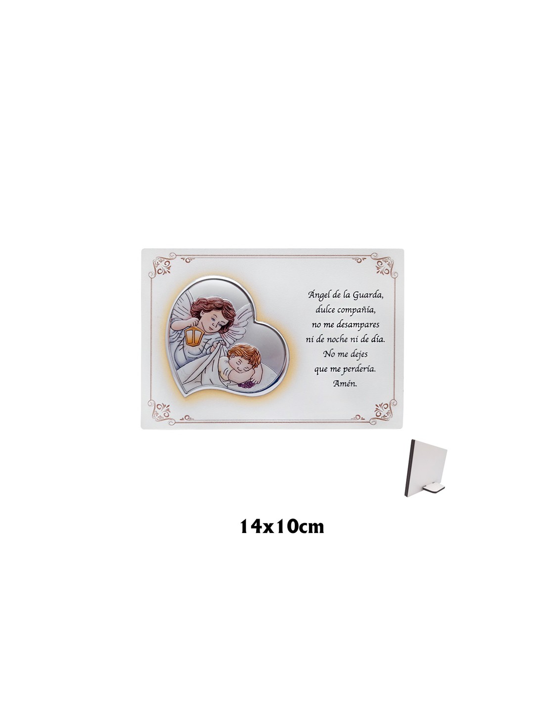 Sobremesa Corazon 7 X 5.5Cm Plata Bilaminada Angel Con Candil Sobre Tabla Con Oracion