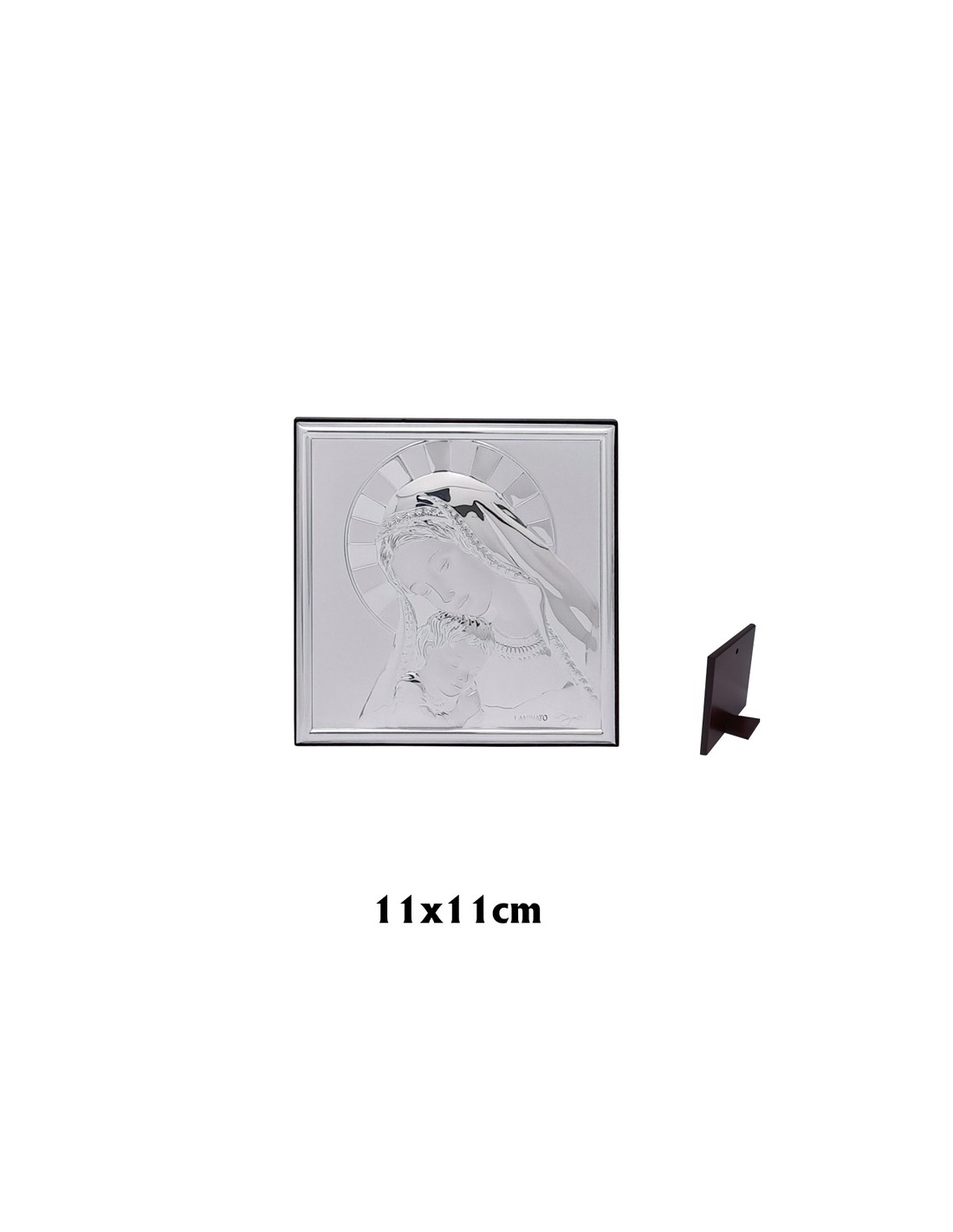Icono Plata Laminada Cuadro Virgen Con Niño 11 X 11Con Base