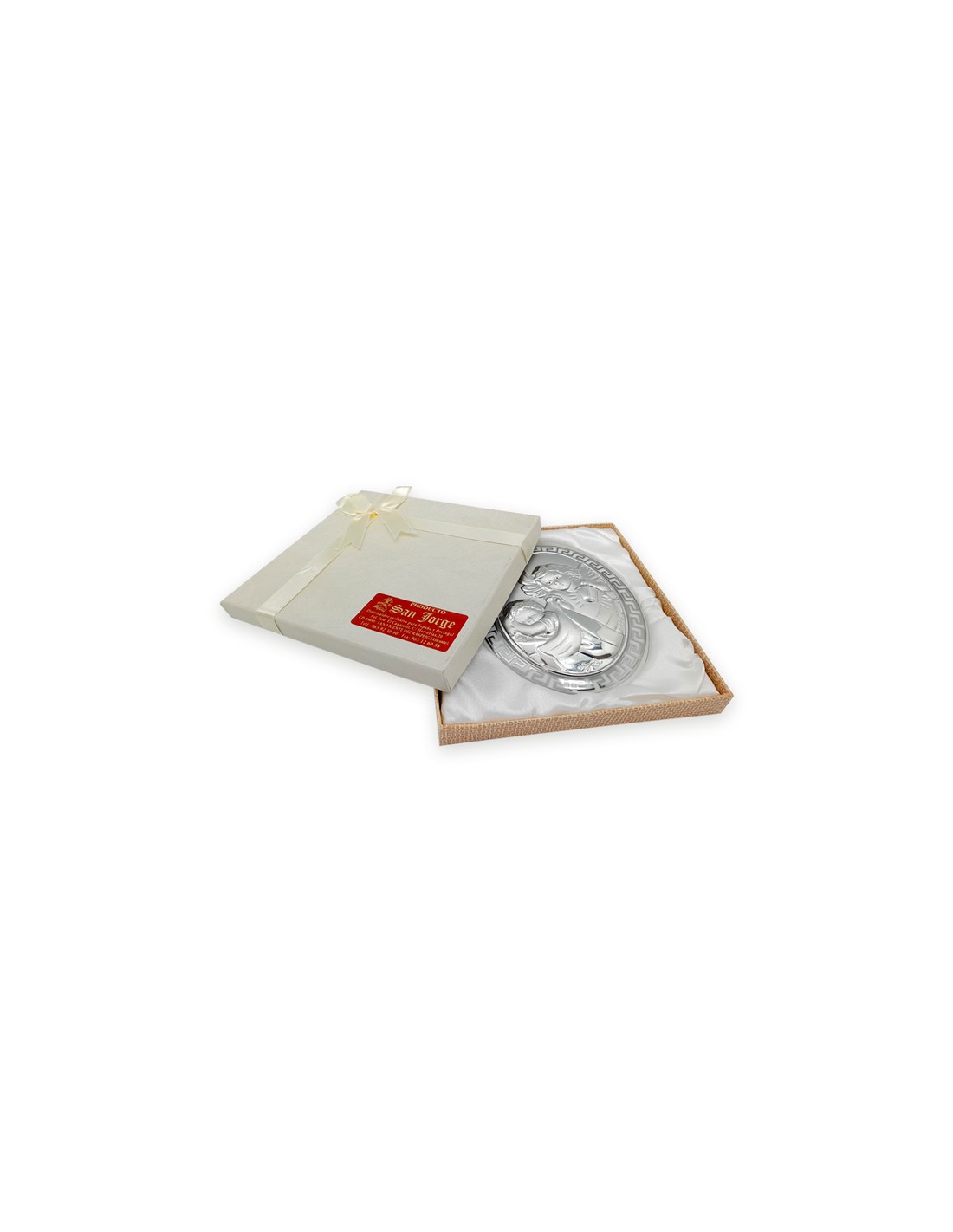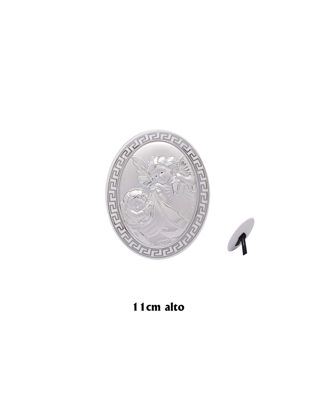 Icono Oval Plata Laminada Sobre Porcelana Blanca Angel Con Candil 12X9 Cm