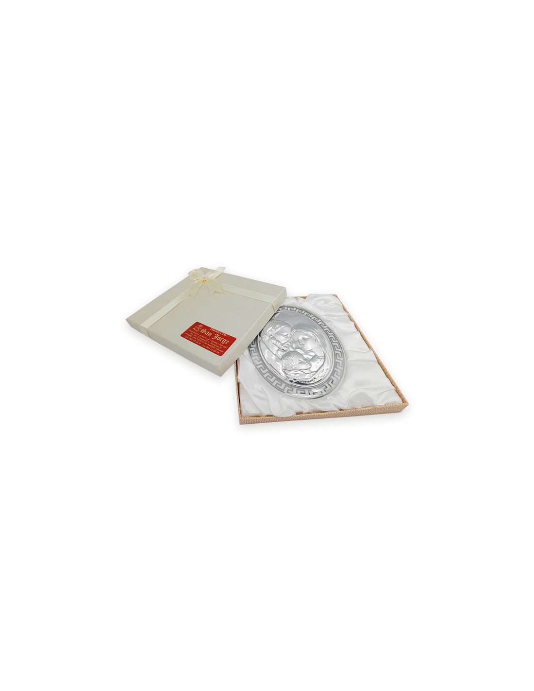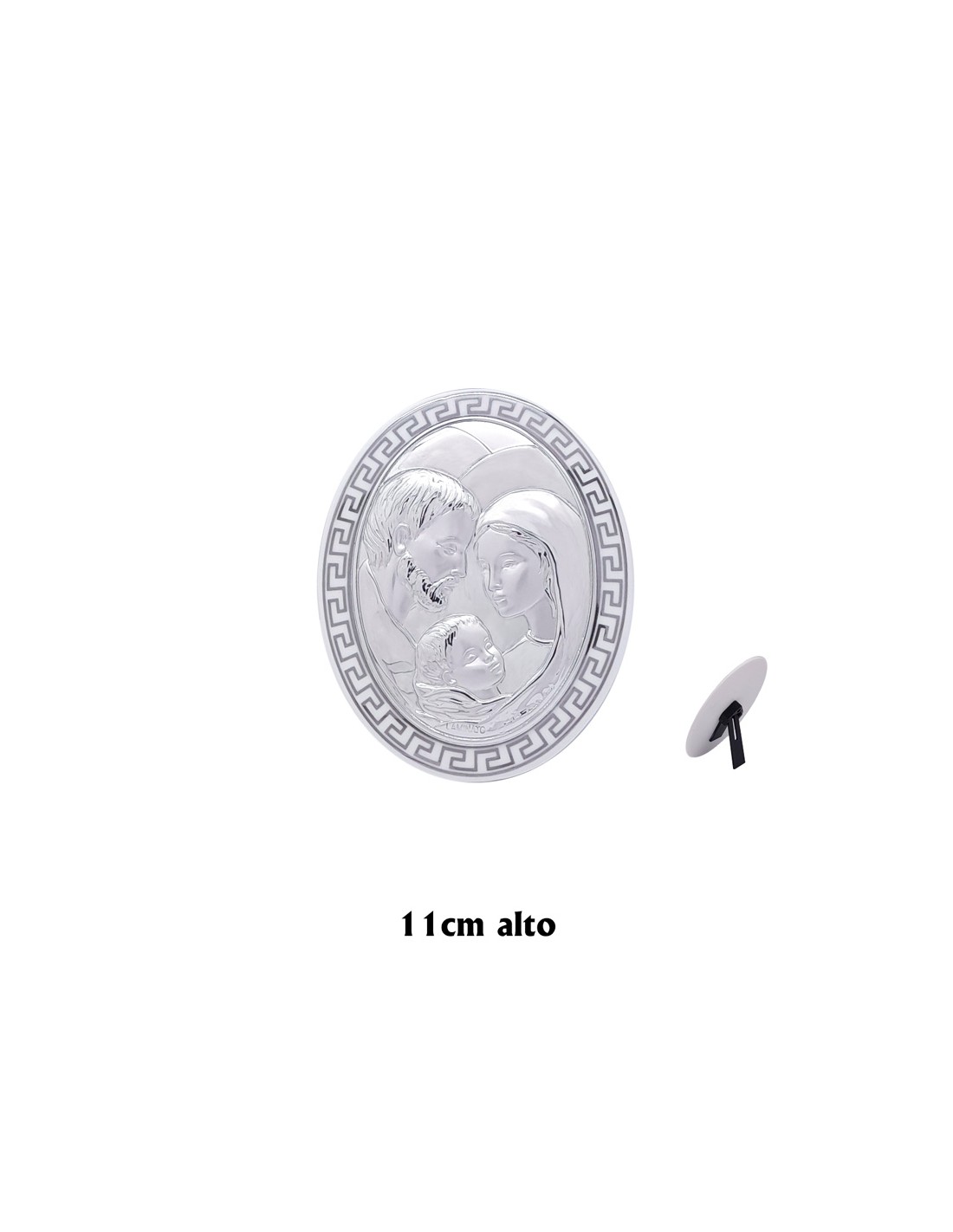 Icono Oval Plata Laminada Sobre Porcelana Blanca Sagrada Familia 12X9 Cm