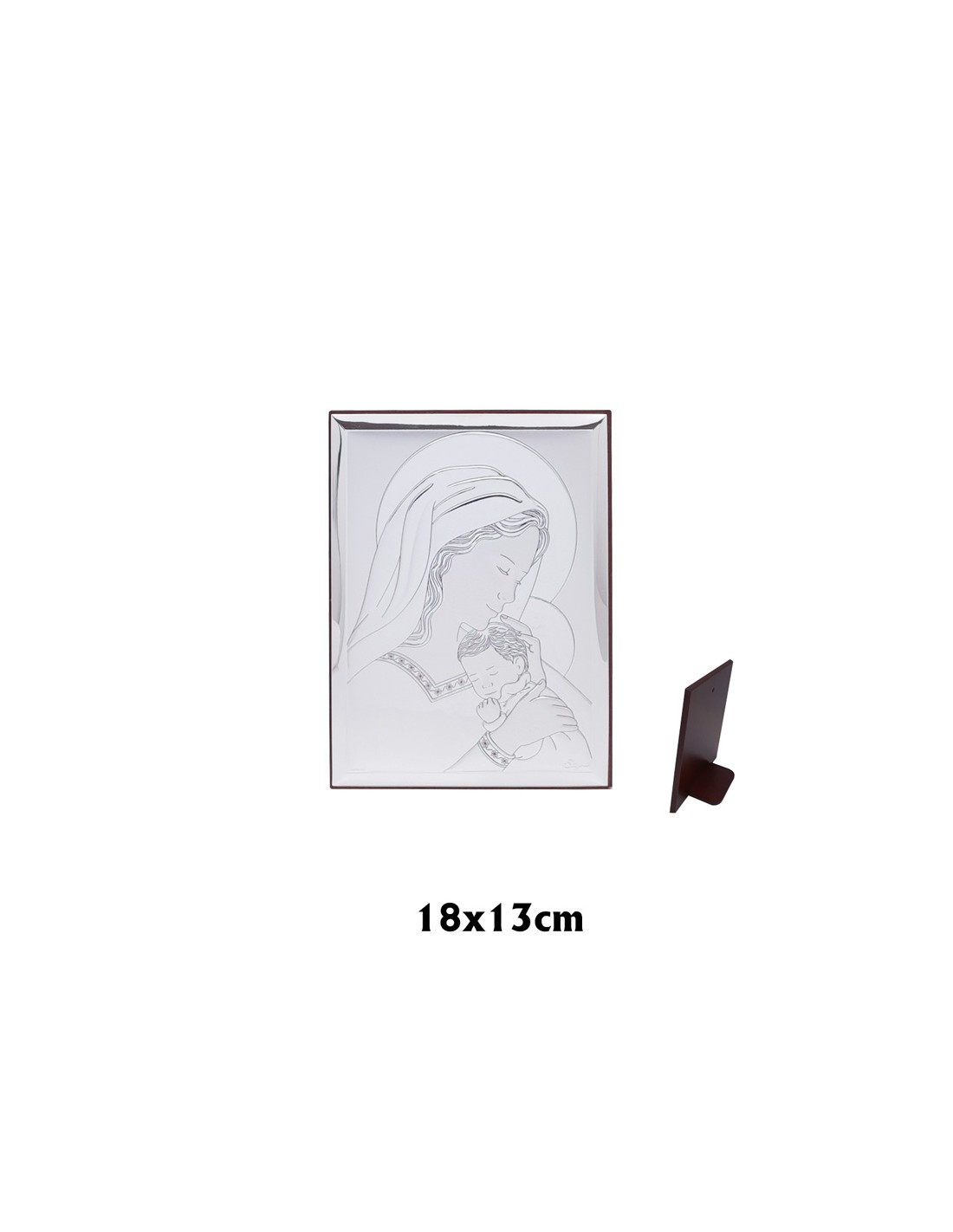 Icono Plata Virgen Con Niño Sobre El Pecho 13 X 18 Cm