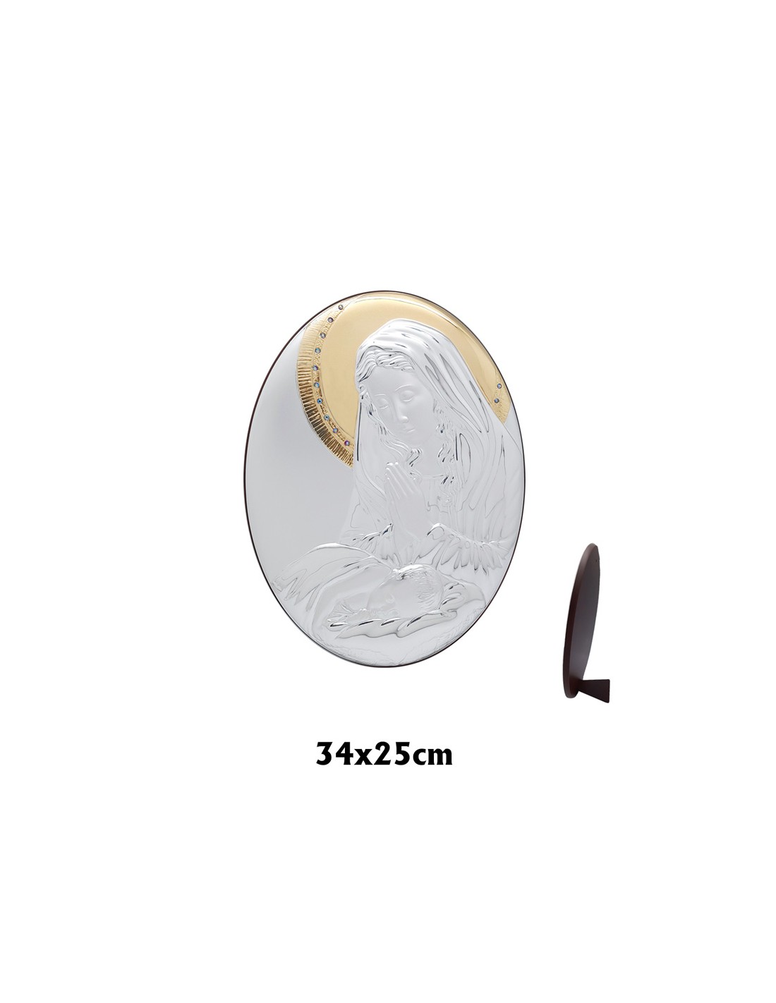 Icono Plata Virgen Con Niño Oval 25 X 34Cm Aureola Dorada