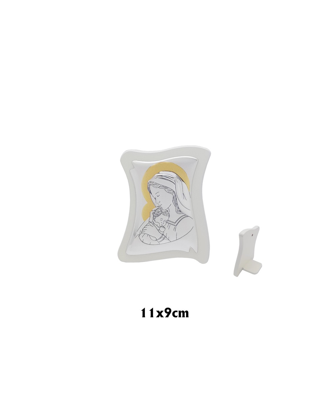 Icono Plata Virgen Con Niño 11 X 9Cm Marco Blanco
