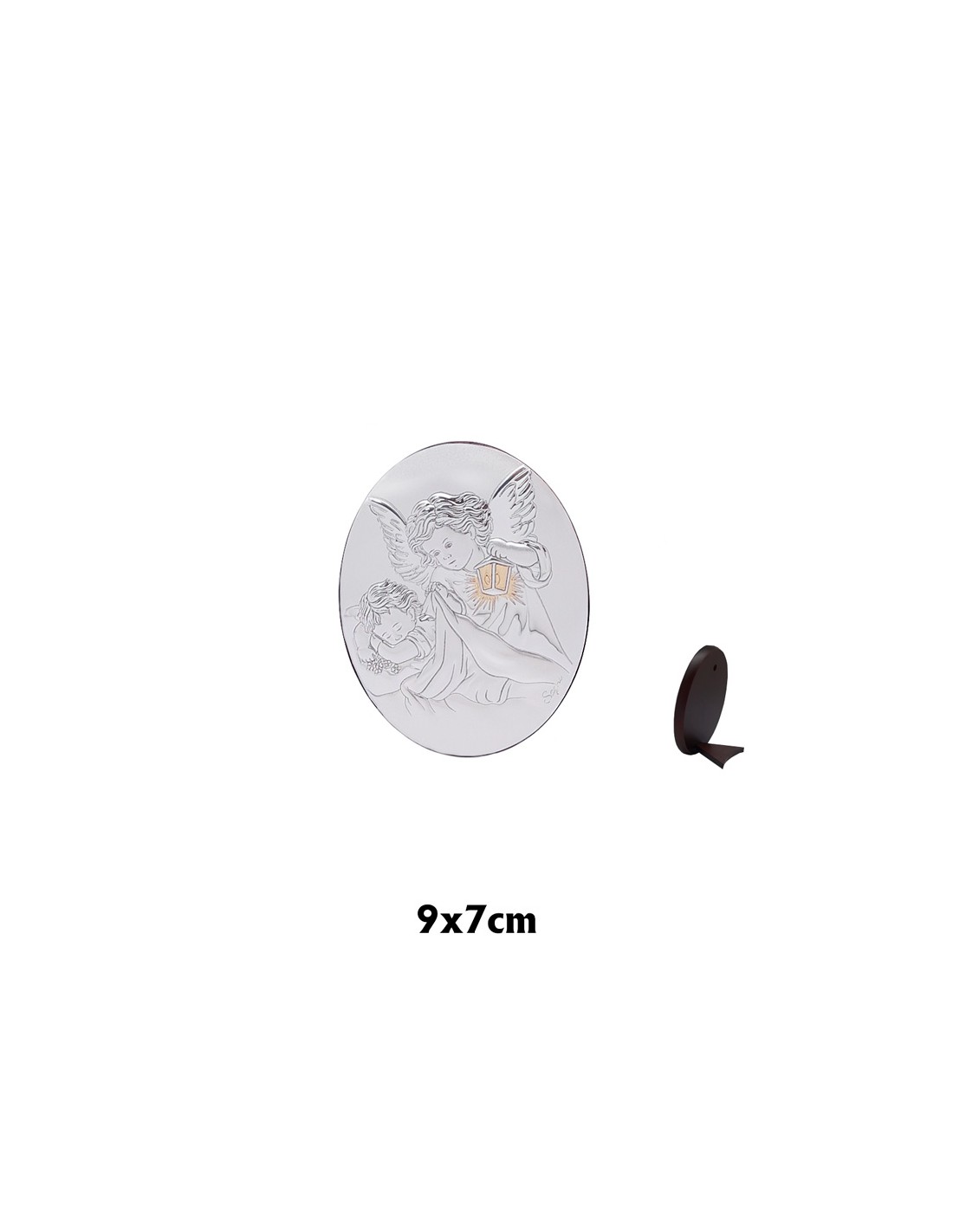 Icono Plata Angel Con Linterna Oval 7 X 9Cm