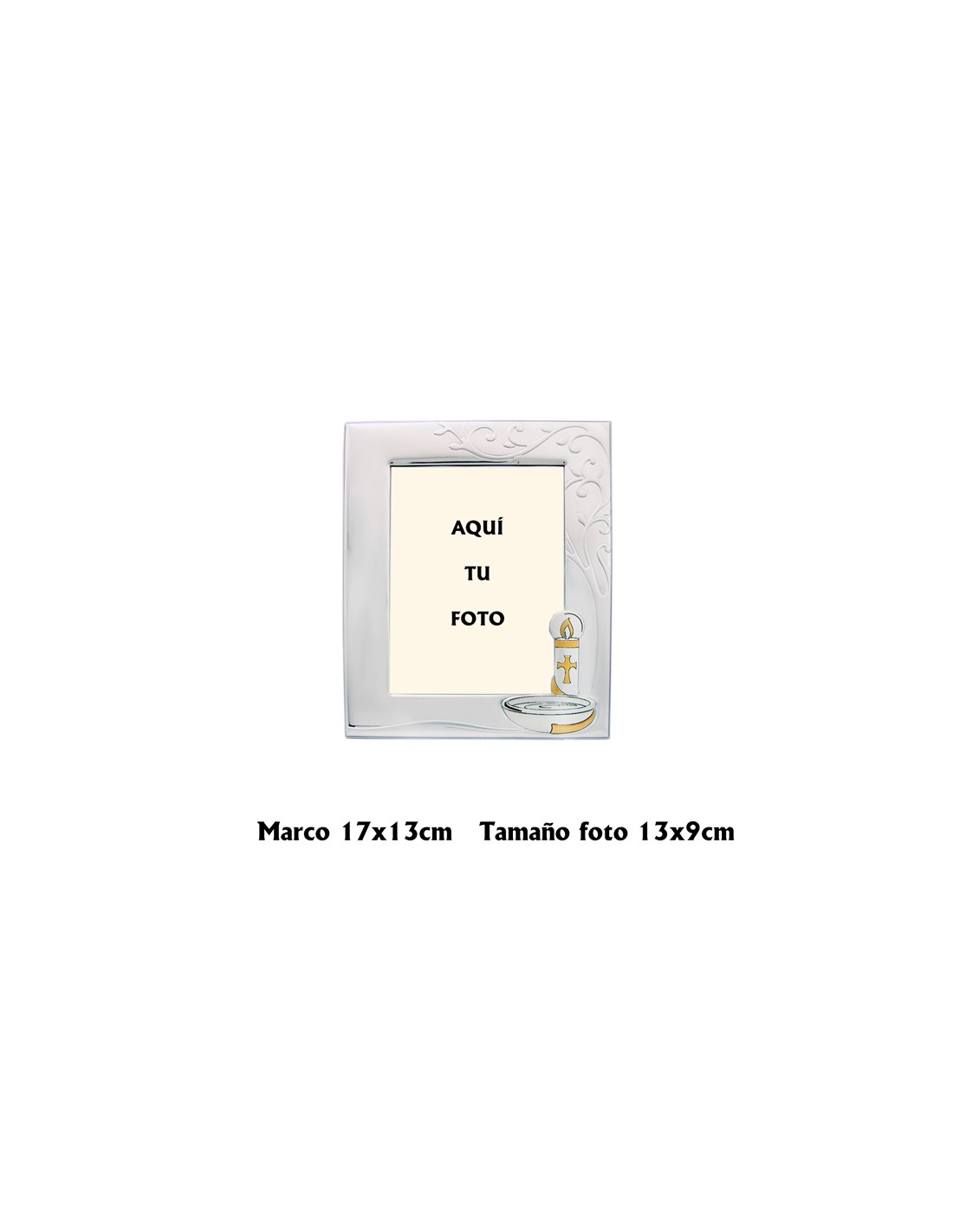 Marco Plata Para Foto Bautizo 17X13 Dibujo Oro Laminado