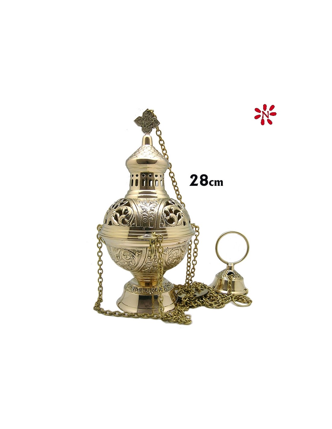 Incensario Bronce Dorado Gotico Labrado Altura 28Cm Con Base