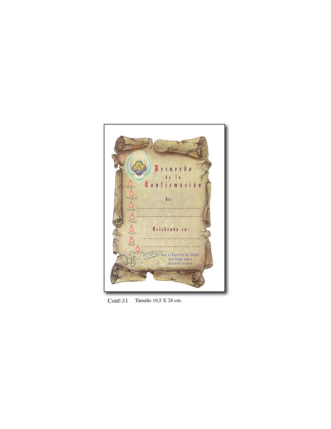 Diploma Confirmacion Mod Conf.31 27X16.5Cm Pergamino