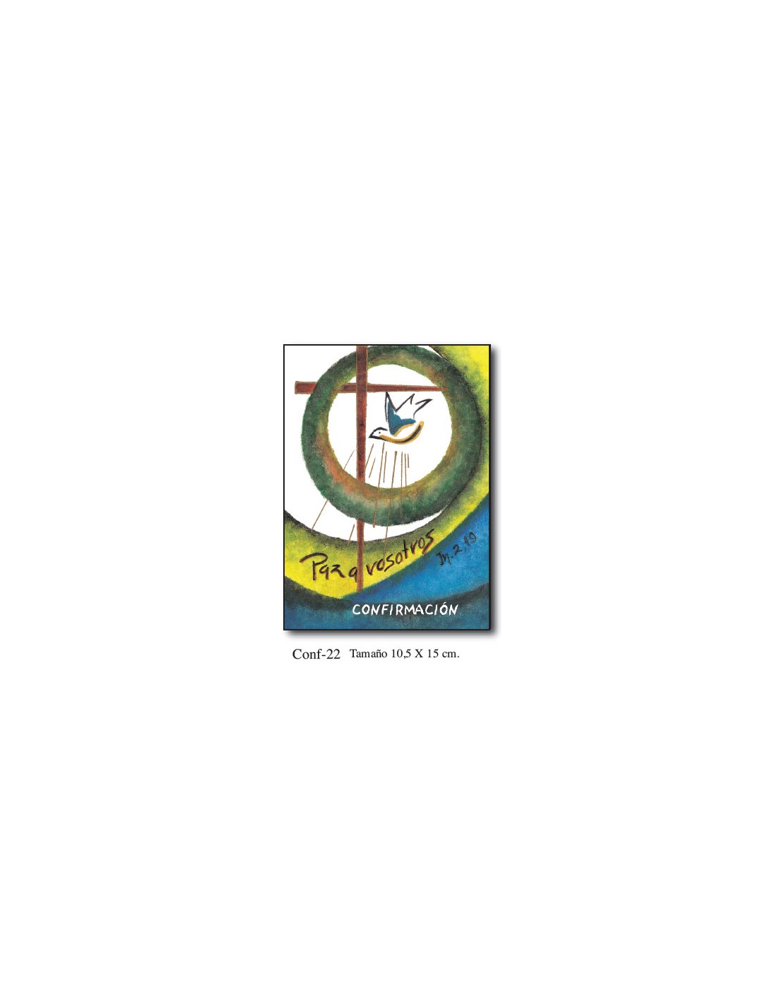 Recuerdo Confirmacion Mod Conf.22 10. 5X15cm Fondo Verde Y Azul Circulo Y Paloma