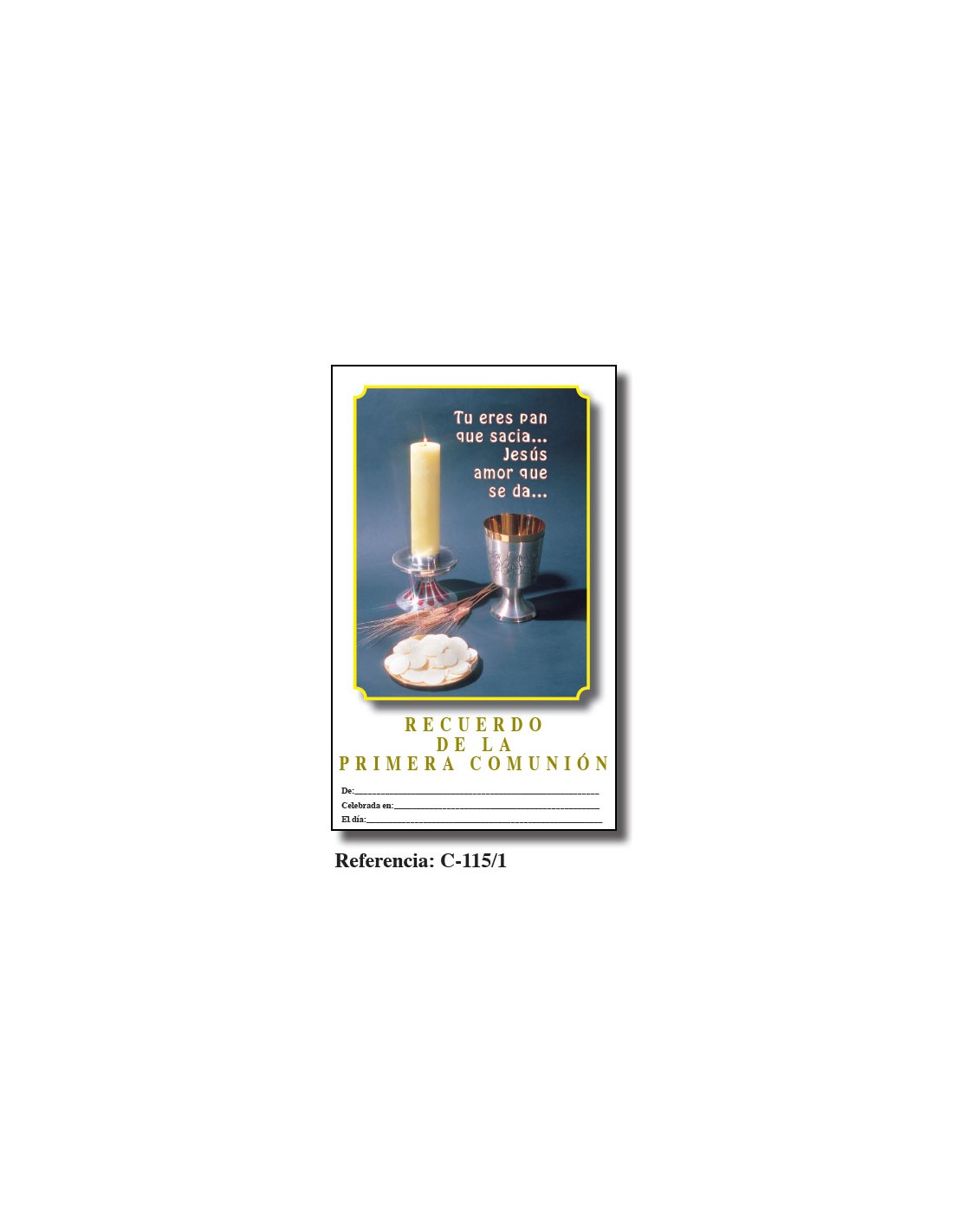 Lamina Primera Comunion 21. 5 X 34Cm Tu Eres Pan Que Sacia C-115/1