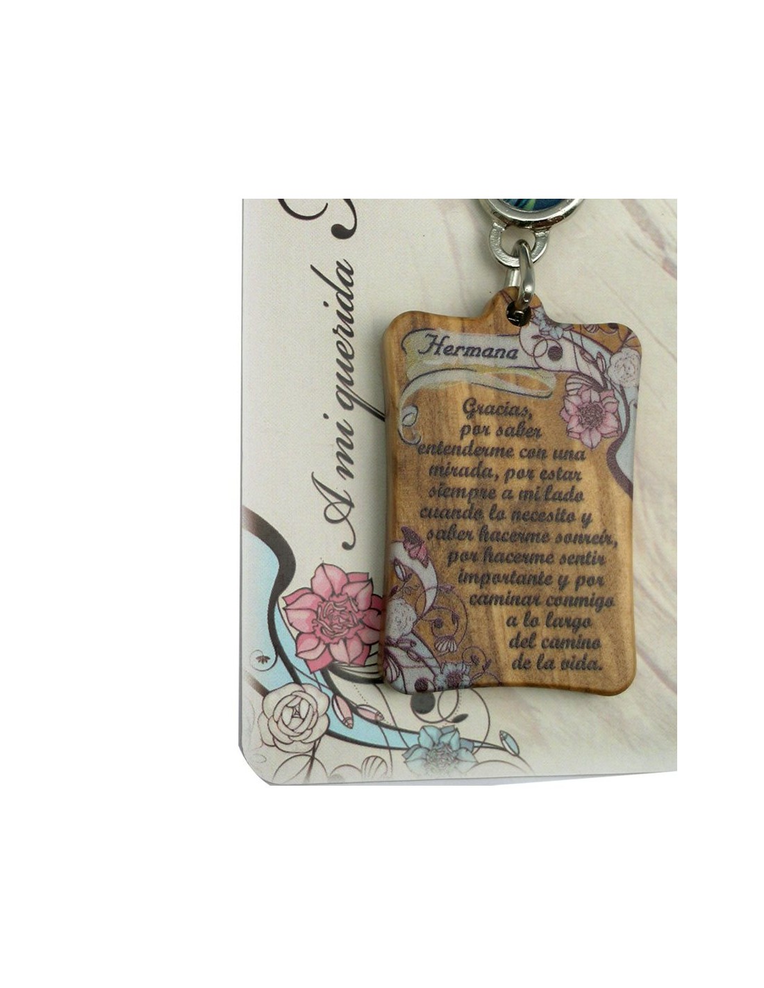 Llavero Madera Olivo Con Texto Para Hermana Con Foto Para Personalizar En Blister