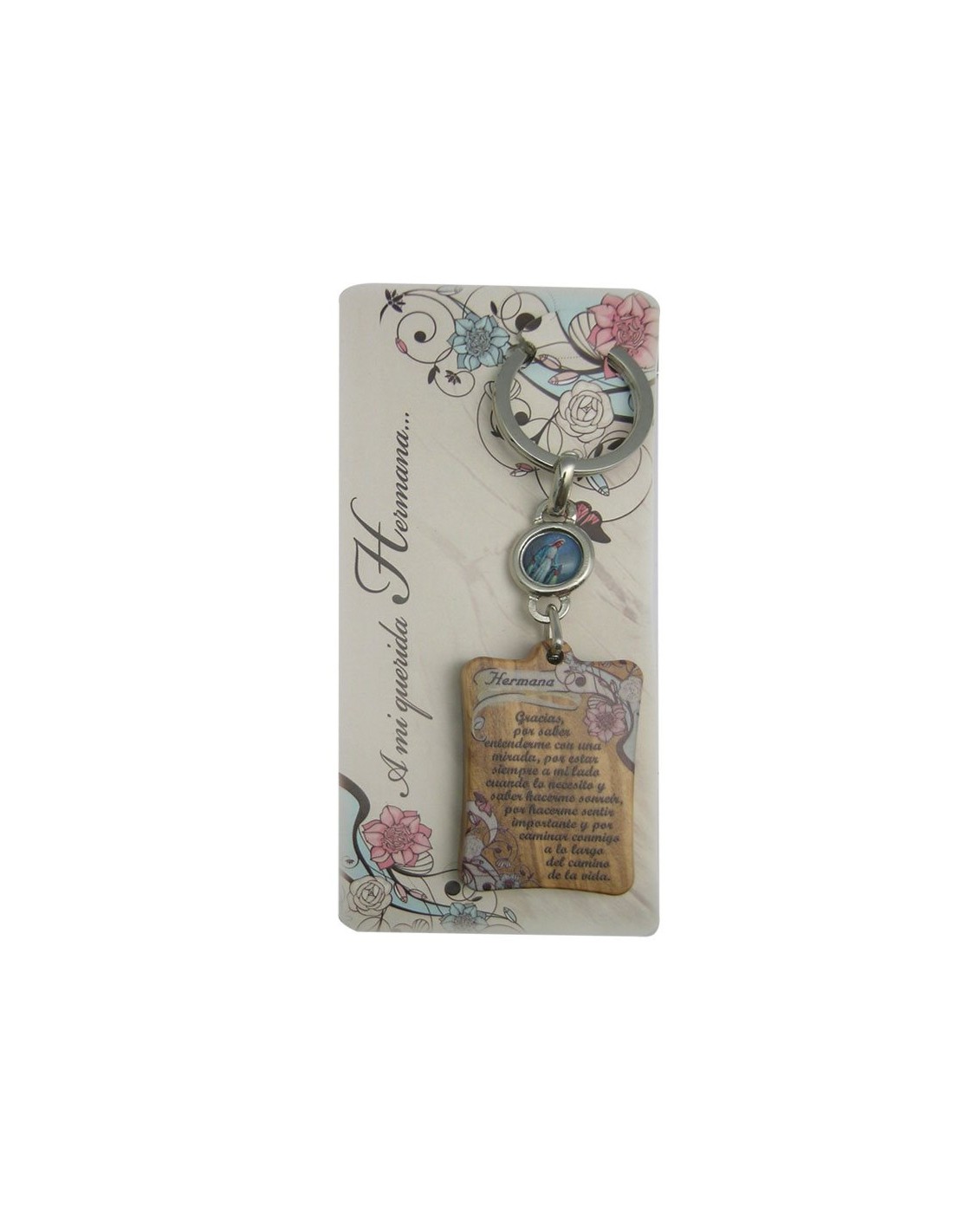 Llavero Madera Olivo Con Texto Para Hermana Con Foto Para Personalizar En Blister