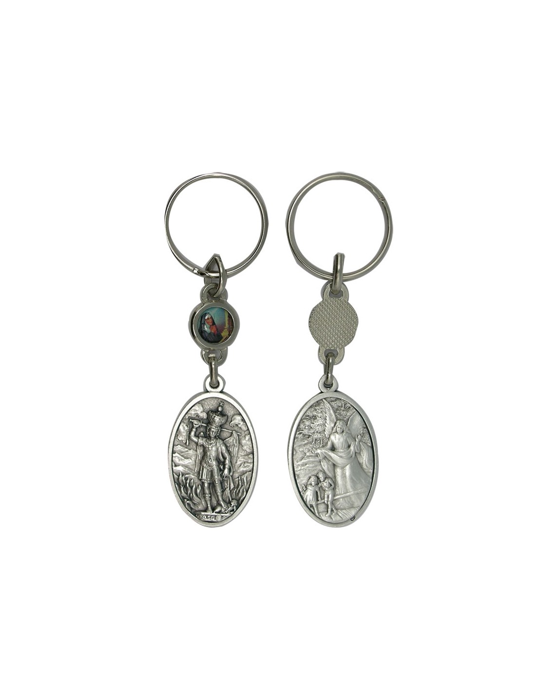 Llavero Metal Angel Guarda Y San Miguel Oval 45X26mm Con Foto Pequeña Parte Superior