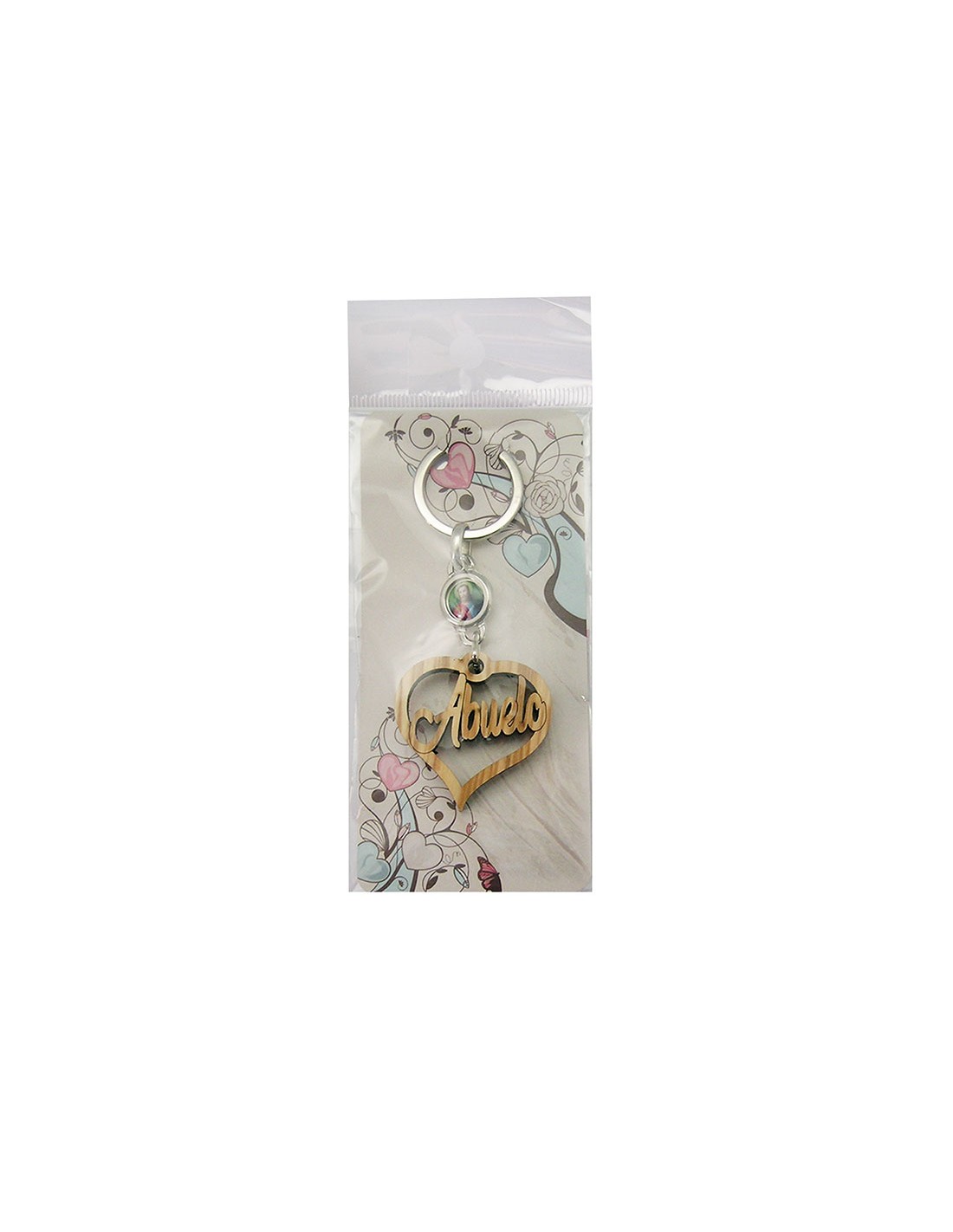 Llavero Madera Olivo Forma Corazon Abuelo Con Foto Para Personalizar En Blister