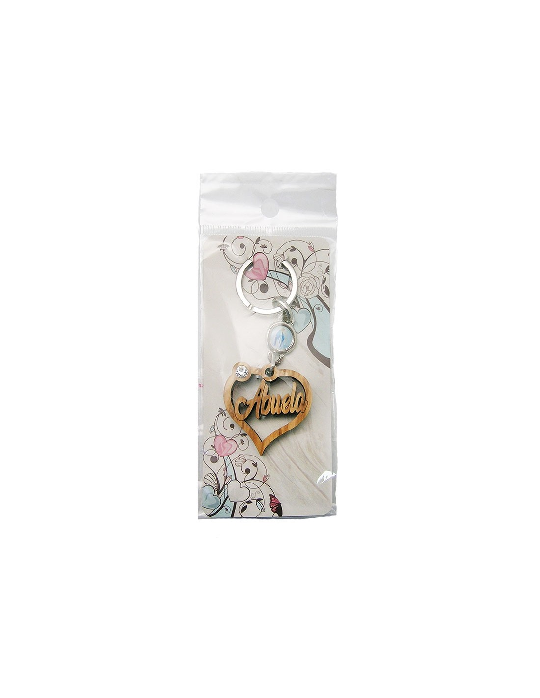Llavero Madera Olivo Forma Corazon Abuela Con Foto Para Personalizar En Blister